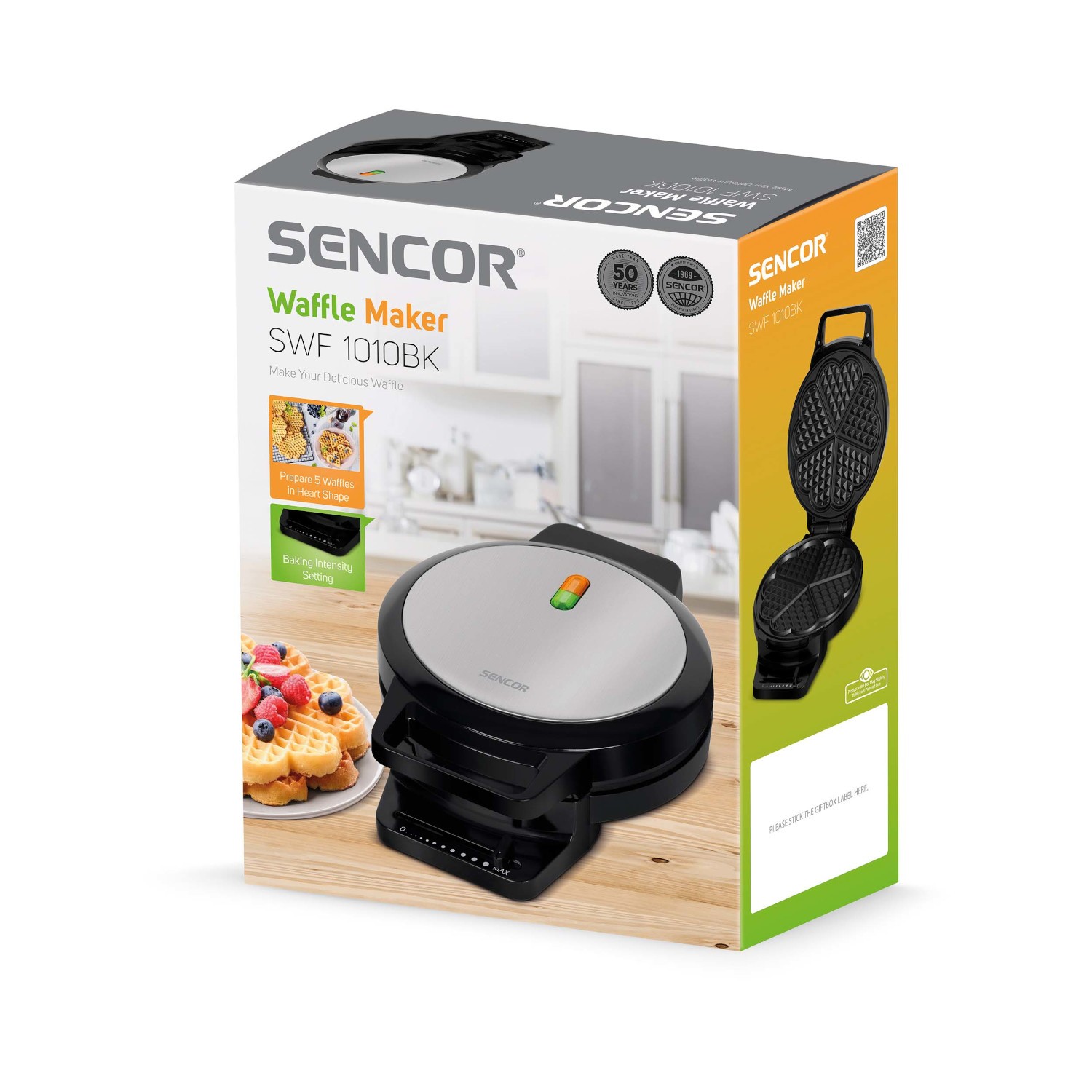 دستگاه وافل ساز سنکور مدل SWF1010BK دارای توانی معادل 1000 وات است که به دستگاه اجازه می دهد در مدت زمان کوتاهی صفحات آن داغ شود و هم اینکه دستگاه مصرف انرژی کمی داشته باشد. دستگاه وافل ساز سینکور دارای صفحات پخت دایره ای شکل بوده که بر روی آن پنج عدد قلب ایجاد شده است. به دلیل خاصیت نچسب بودن صفحات مواد بعد از پخت به راحتی از آن جدا شده و همچنین به آسانی تمیز میشود.