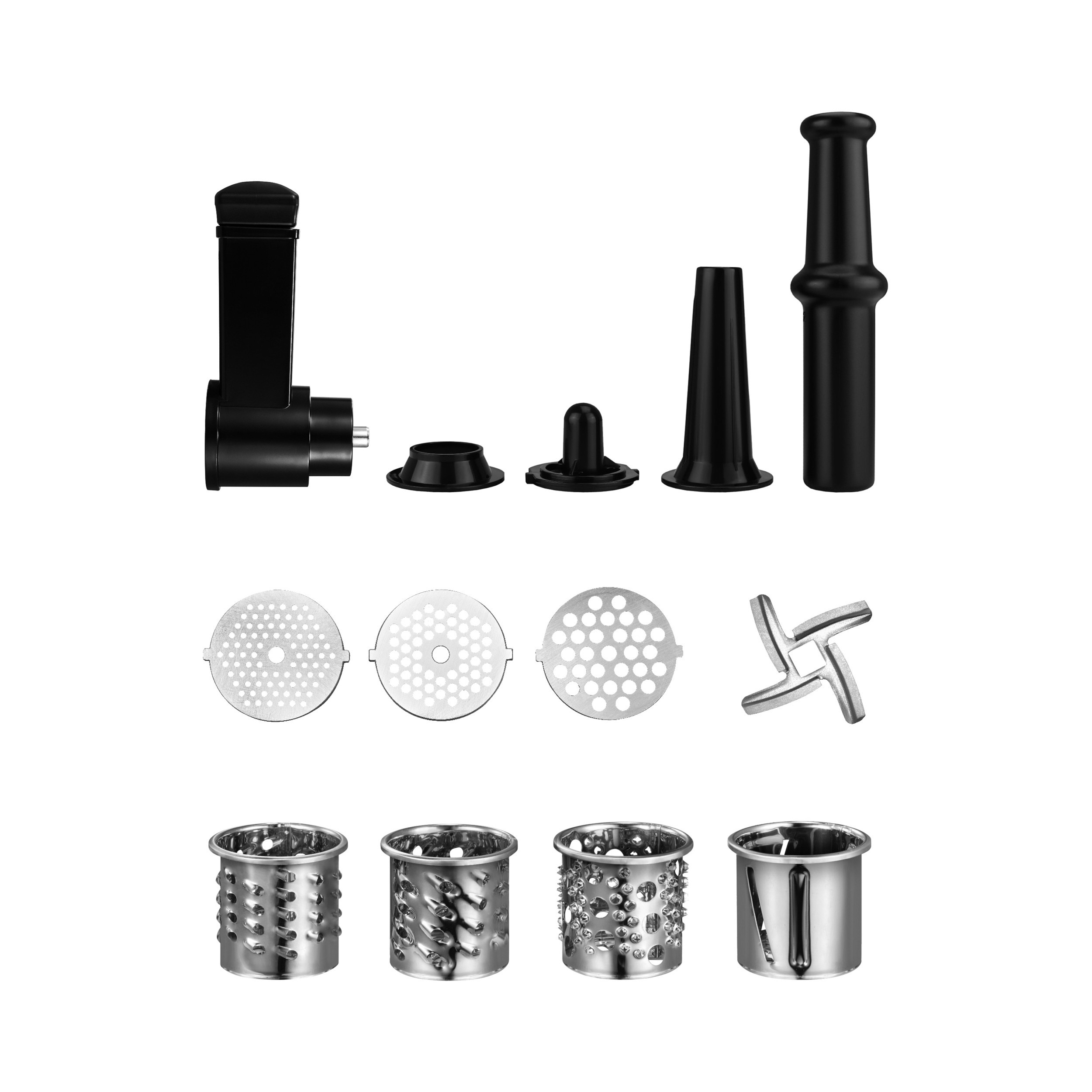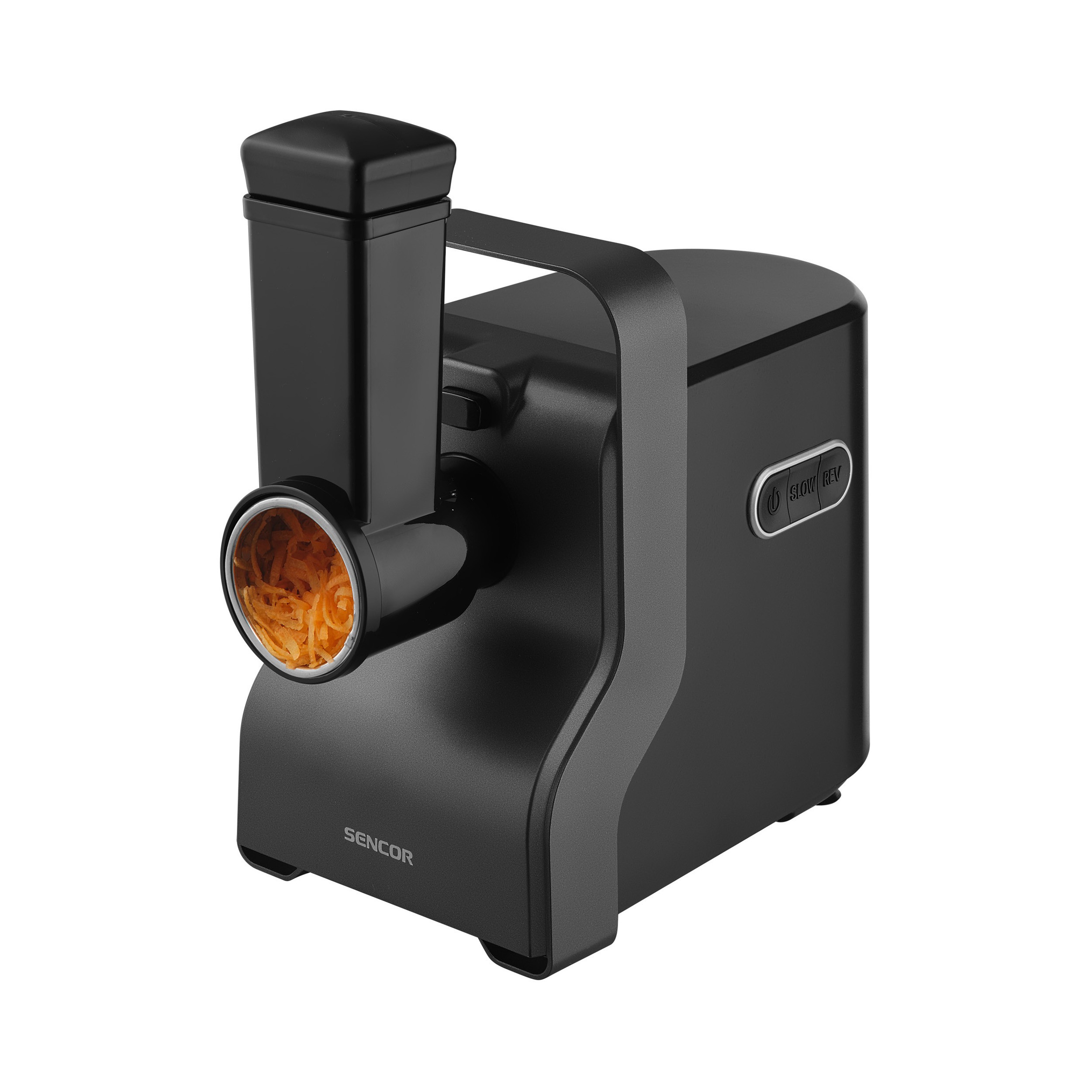 پنل تنظیماتچرخ گوشت SENCOR SMG 5400BK دارای 1 تیغه از جنس استیل ضد زنگ، گلویی استیل و 3 شبکه استیل در سایزهای 3 میلی متر (ریز)، 5 میلی متر (متوسط) و 7 میلی متر (درشت) است. همچنین مجهز به رنده و برش دهنده بوده که شامل 4 نوع مختلف از جمله رنده برای برش های نازک، رنده برای خرد کردن درشت، رنده ریز و رنده بسیار ریز برای پنیر و آجیل است. این رنده ها 1 گلویی مخصوص از جنس پلاستیک به صورت جداگانه دارند که به جای گلویی استیل به بدنه وصل می شود.