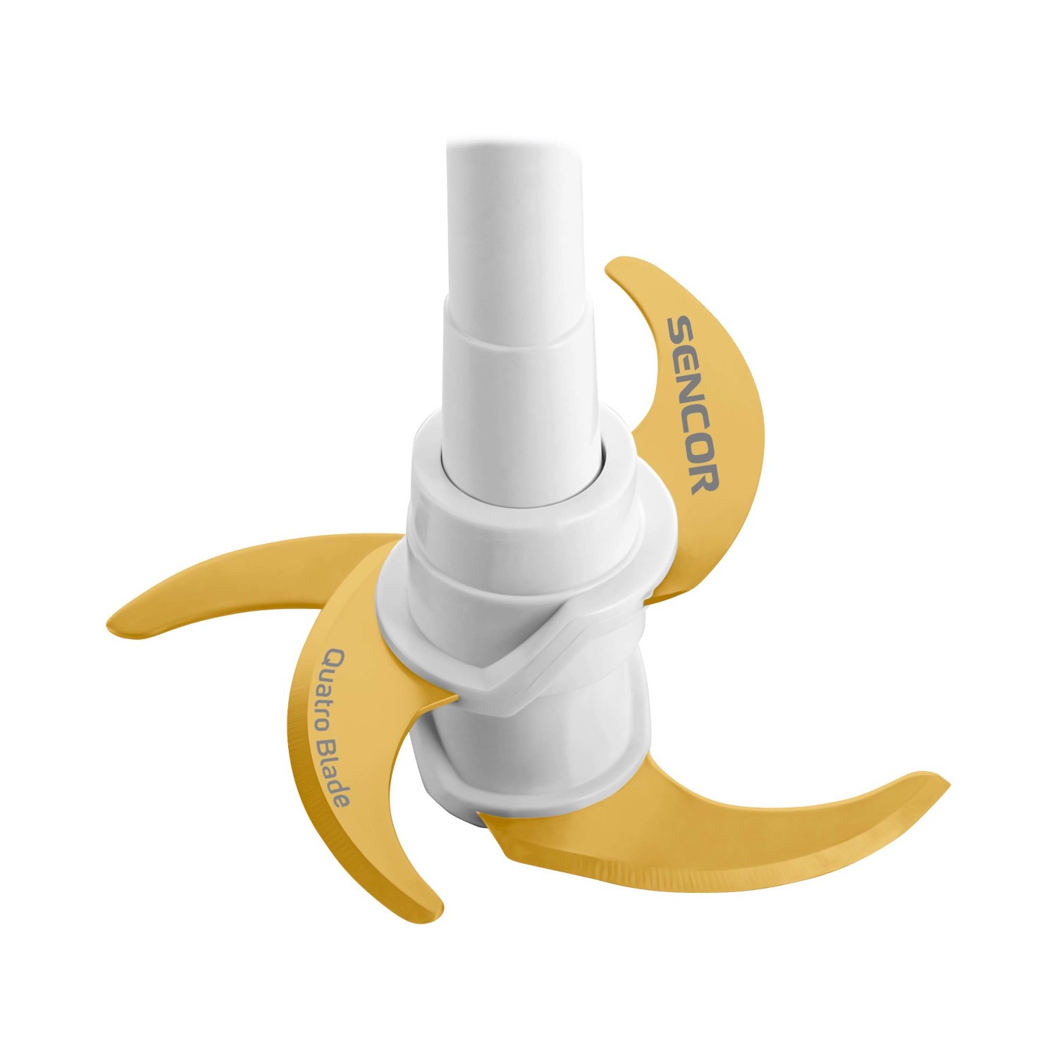 دستگاه خردکن سنکور مدل SCB5100WH دارای تیغه هایی از جنس تیتانیوم است که هلالی شکل می باشند این  تیغه ها بسیار تیز و در برابر زنگ زدگی و خوردگی بسیار مقاومند. قطعات خردکن جدا می شوند و می توان آنها را در ماشین ظرف شویی شستشو داد.