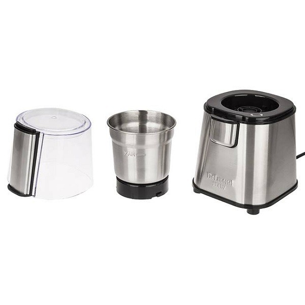 آسیاب قهوه Delmonti DL125 از توان 220 وات برخوردار بوده و ظرفیت کاسه آن 1.5 لیتر میباشد. دستگاه به سیستم قفل ایمنی مجهز بوده و تا زمانی که به طور کامل بر روی بدنه قفل نگردد آسیاب روشن نخواهد شد. ظرف و درب دستگاه به راحتی جدا شده و قابلیت شستشو را دارد.