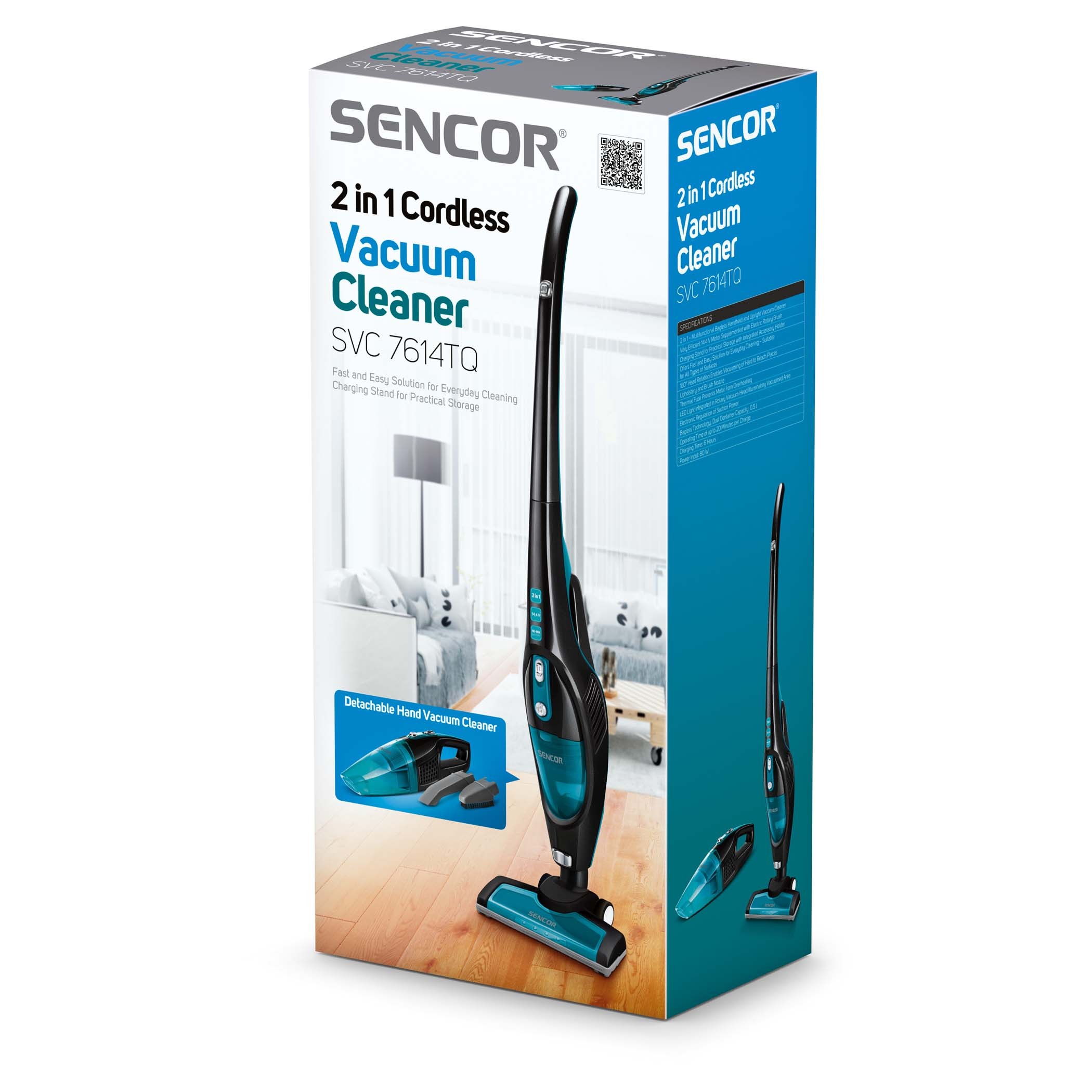 سر این جارو شارژی Sencor SVC 7614 TQ قابلیت چرخش 180 درجه را دارد. مدت زمان شارژ کامل این دستگاه 6 ساعت است و با یک بار شارژ کامل می توانید 20 دقیقه از آن استفاده نمایید. حتی زمانی که اعضای خانواده در حال استراحت هستند، استفاده از آن با سطح صدای پایین 75 دسی بل، مزاحمتی برای آنها ایجاد نمی کند.