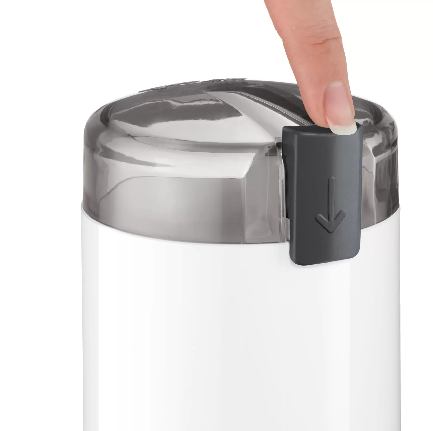 آسیاب قهوه BOSCH TAM6A011W به سوئیچ ایمنی نیز مجهز شده است و دستگاه تنها زمانی شروع به کار می کند که درپوش آن به درستی در جای خود قرار گرفته باشد. برای شروع به کار دستگاه، کافیست سوئیچ آن را به سمت پایین فشار بدهید.