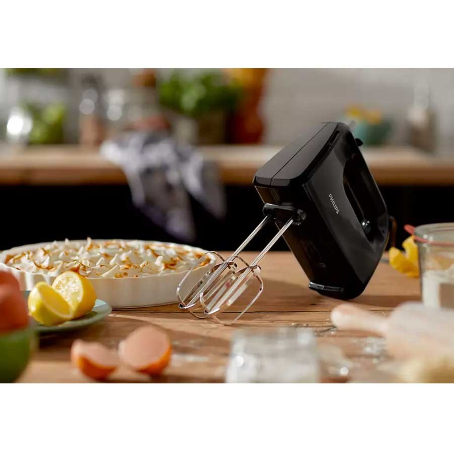 همزن برقی یکی از مهم ترین لوازم آشپزخانه است که عمل میکس و مخلوط کردن مواد غذایی را انجام می دهد. همزن برقی فیلیپس مدل HR3705 یک همزن دستی کاربردی و سبک وزن با طراحی ارگونومیک برای استفاده روزانه است که انواع خمیر را تا 20 درصد سریع تر و راحت تر آماده می کند. این همزن دستی شامل دو عدد سری تخم مرغ زن و دو عدد سری قلاب برای ورز دادن خمیر، از جنس استیل ضد زنگ با قابلیت شستشو در ماشین ظرفشویی است. سری های این همزن قابلیت اتصال آسان دارد و به راحتی در جای خود قابل کیپ شدن می باشند و تنها با لمس دکمه بالایی از جای خود بیرون می آید.