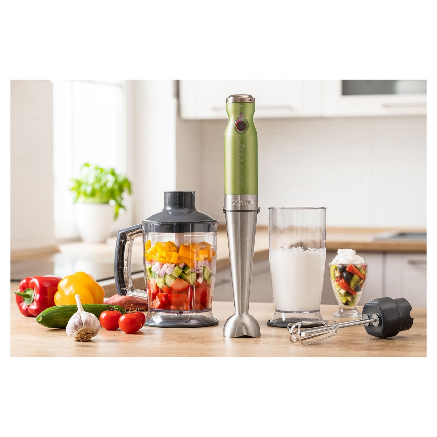 سری همزن دوتایی این دستگاه به راحتی می تواند خامه، سس مایونز، سس، کرم، سفیده تخم مرغ و خمیرهای مختلف دسر را با هم مخلوط کند. تیغه های آن از استیل ضد زنگ بهداشتی ساخته شده است که عمر طولانی را تضمین می کند. همچنین یک ظرف 800 میلی لیتری را به همزن و سر مخلوط اضافه کرده است تا روند استفاده را آسان تر کند.