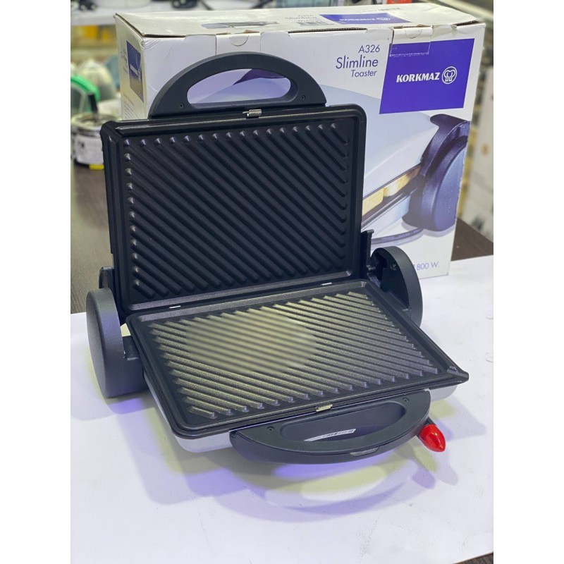 این محصول یک دستگاه پخت و پز چند منظوره با توان 1800 وات، دارای بدنه ای از جنس استیل و بسیار مقاوم است که علاوه بر استفاده به عنوان گریل، میتوان از آن برای تست نان و کباب کردن نیز استفاده کرد. صفحات دستگاه گریل KORKMAZ Slimline A326 از جنس آلومینیوم، با پوشش PTFE و کاملا نچسب بوده و تا 180 درجه قابلیت باز شدن دارند. به همین دلیل تمیز کردن و شستشوی آن بسیار راحت میباشد.