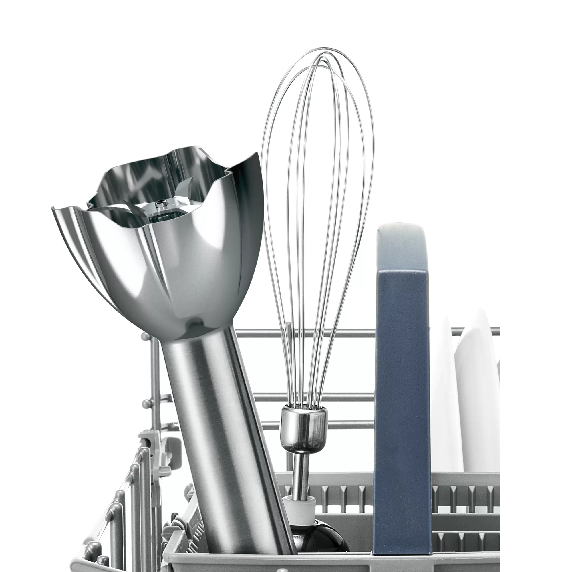 قسمت موتور گوشتکوب برقی بوش مدل MS8CM6160 از استیل و پلاستیک با کیفیت و جنس میله و تیغه 4 پره آن از استیل ضد زنگ ساخته شدهاند. تیغه این دستگاه با فناوری (Quattro Blade Pro) تولید شده است تا بدون پاشیدن مواد به اطراف و کمترین مکش، ایده آل ترین نتیجه را فراهم بیاورد. به همراه غذاساز بوش سری همزن از جنس استیل ضد زنگ برای هم زدن سفیده تخم مرغ و تهیه خامه سفت و خمیرهای خوشمزه کرپ یا پنکیک نیز وجود دارد که برای استفاده از آن کافی است سری را به قسمت موتور وصل کرد. له کردن، پوره کردن و همچنین همزدن مواد مختلف را میتوانید در داخل ظرف 600 میلی لیتری انجام دهید.