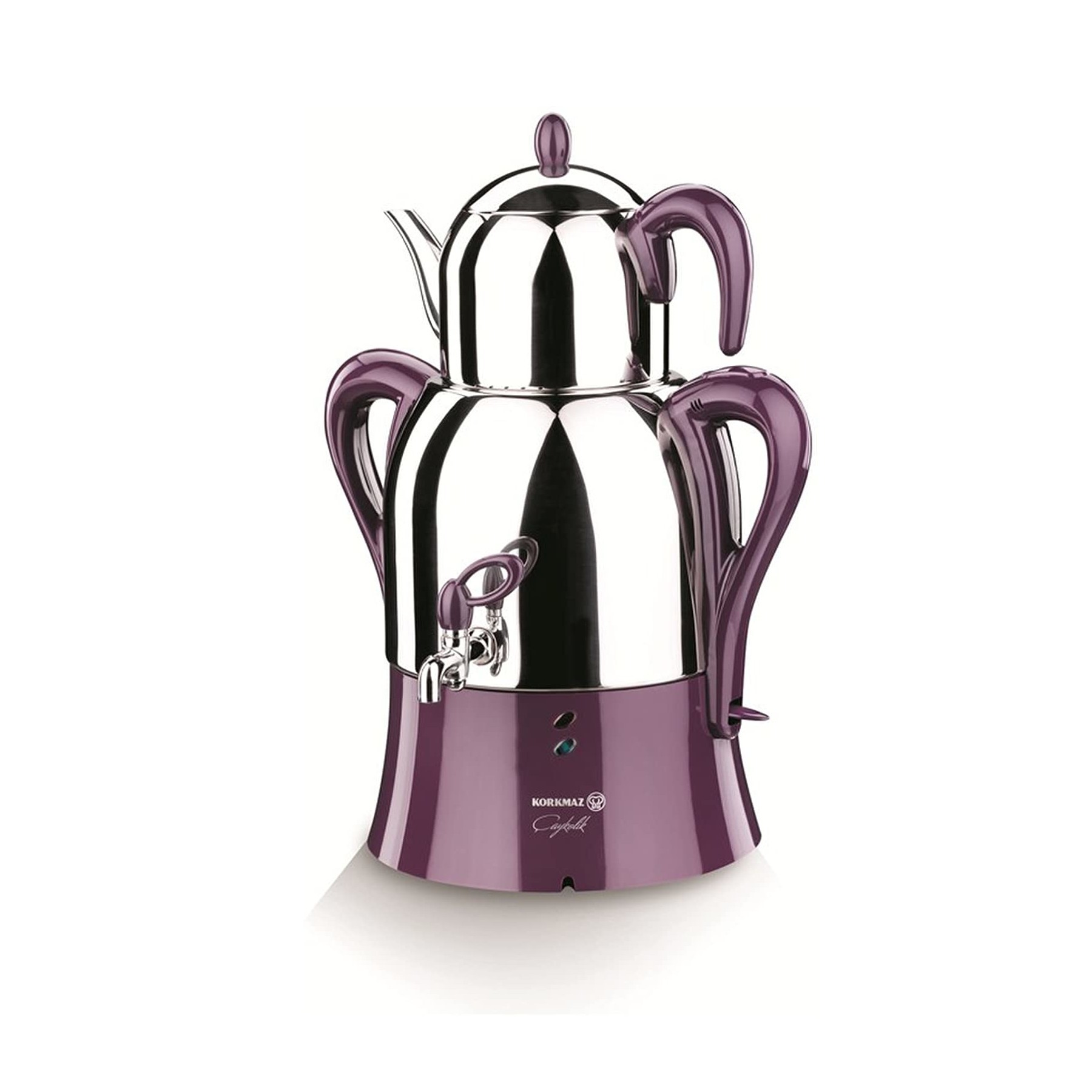 سماور برقی مدل چای کولیک کرکماز در سه رنگ مشکی (A341-04)، بنفش (A 341-07) و صورتی (A341-11) به بازار عرضه شده است.