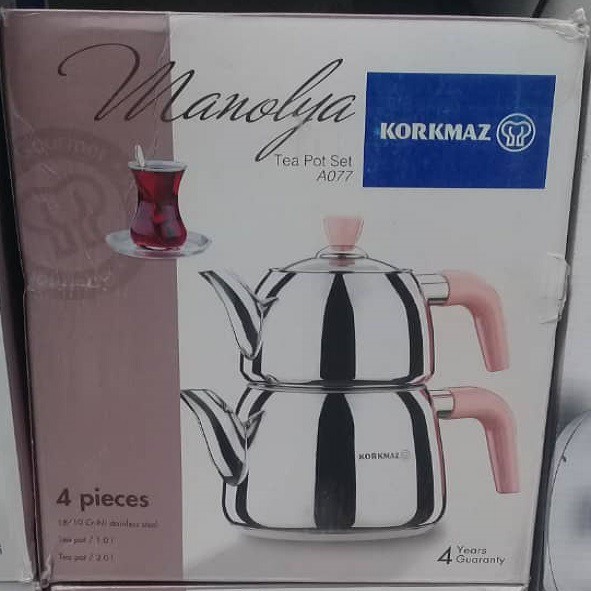 کتری و قوری کرکماز مدل مانولیا A077 یکی دیگر از سری کتری و قوری‌های شرکت کرکماز می‌باشد. در ساخت این محصول از استیل ضدزنگ 18/10 (Cr-Ni 18/10 stainless steel) استفاده شده است. در استیل ضد زنگ 18/10، 18 درصد کروم و 10 نیکل به کار رفته است که وجود آن‌ها باعث زیبایی و مقاوم بودن بدنه می‌شود. سطح خارجی کتری و قوری با دقت زیادی صیقل داده شده است که باعث جلا و درخشندگی آن‌ها خواهد شد.