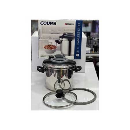 زودپز کورس مدل CP2103 یک دیگ روگازی با ظرفیت 7 لیتر برای تهیه غذا است که با استفاده از فشار بخار آب باعث پخت و پز در زمان بسیار کمی می شود و دارای دو نوع تنظیم بخار است. این زودپز از جنس بدنه و درب استیل ضد زنگ ساخته شده است که در برابر ضربه های احتمالی استحکام و مقاومت خوبی دارد و همچین دارای درب شیشه ای مجزا نیز است. ظرفیت زودپز 7 لیتر طراحی شده است که برای پخت غذا به تعداد 6 نفر یک گزینه ایده آل و مناسب است و با استفاده از آن می توانید با رعایت دستور العمل های دقیق با خیال راحت غذاهای مورد علاقه خود را داخل این دستگاه طبخ کنید.