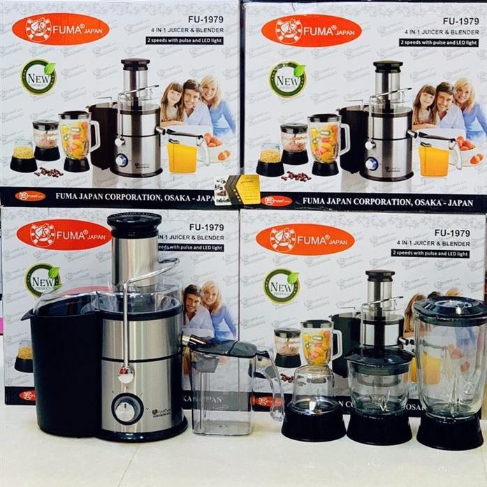 آبمیوه گیری چهارکاره مدل FU-1979 فوما دارای توان 1200 وات می باشد. این ست آبمیوه گیری فوما دارای خردکن ، آسیاب ، مخلوط کن و آبمیوه گیر می باشد. با استفاده از این قطعات می توانید انواع آبمیوه ها را گرفته و اسموتی های خوشمزه و مختلف ساخته و یا ادویه های خوش عطر بسازید. آبمیوه گیر 1979 فوما دارای دو سطح مختلف سرعتی قابل تنظیم است و بدنه آن از جنس فلز ضدزنگ است. از دیگر مزیت های این آبمیوه گیر می توان به دارا بودن سویچ های ایمنی ، پایه های ضدلغزش ، دهانه ورودی 75 میلی متری و سیستم محافظ ویژه موتور دستگاه در فشار زیاد اشاره نمود.