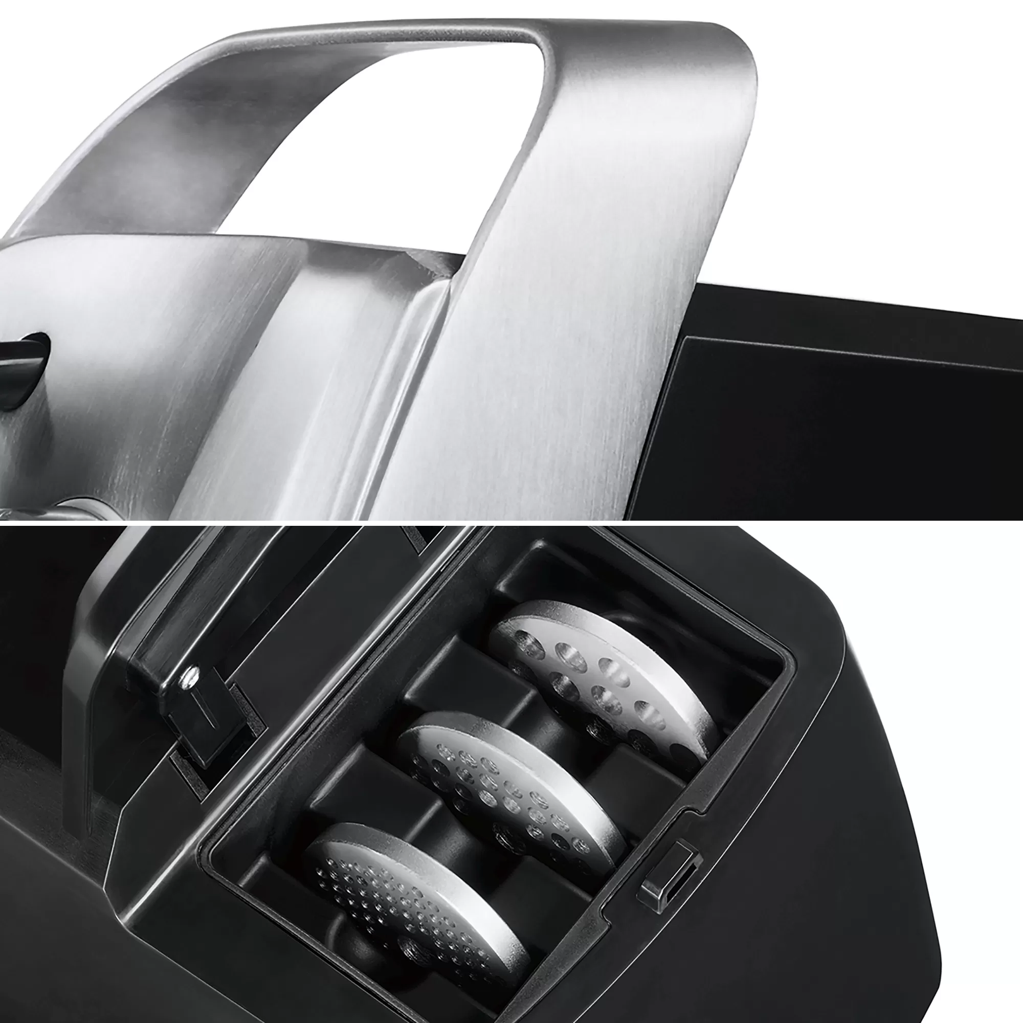 چرخ گوشت مدل MFW68660 بوش دارای فضای مخصوص برای قرار دادن لوازم جانبی در قسمت عقب دستگاه است. علاوه بر این پایه های ضد لغزش و ایمن به شکلی هوشمندانه برای آن تعبیه شده اند تا دستگاه هنگام استفاده حرکت نکند. همچنین به جهت حمل آسان تر دسته ای از جنس بدنه در امتداد آن طراحی شده است.