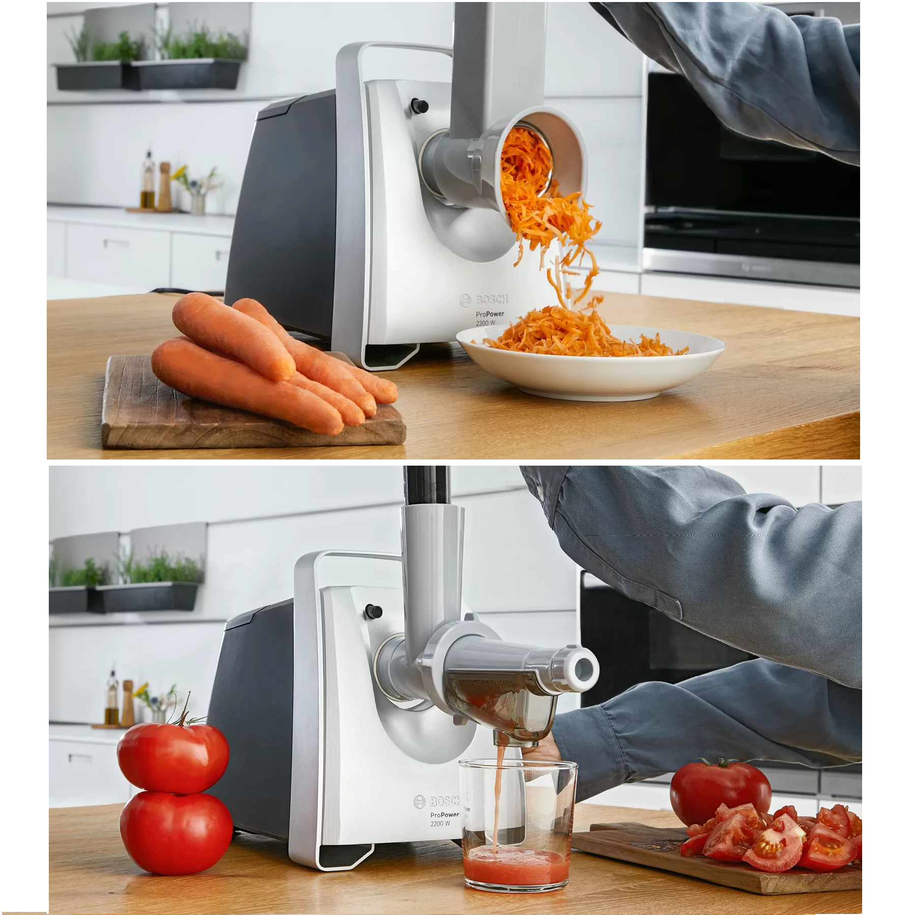 چرخ گوشت بوش مدل MFW68660 یک سری آبمیوه گیری دارد که به شما این امکان را می دهد که به روشی قوی اما ملایم آبمیوه تازه برای خود فراهم کنید؛ زیرا درست کردن آبمیوه و یا آب گوجه فرنگی توسط خود شما می تواند کار سختی باشد، اما با قراردادن این سری، به راحتی می توانید خودتان آب میوه های سالم را بگیرید.