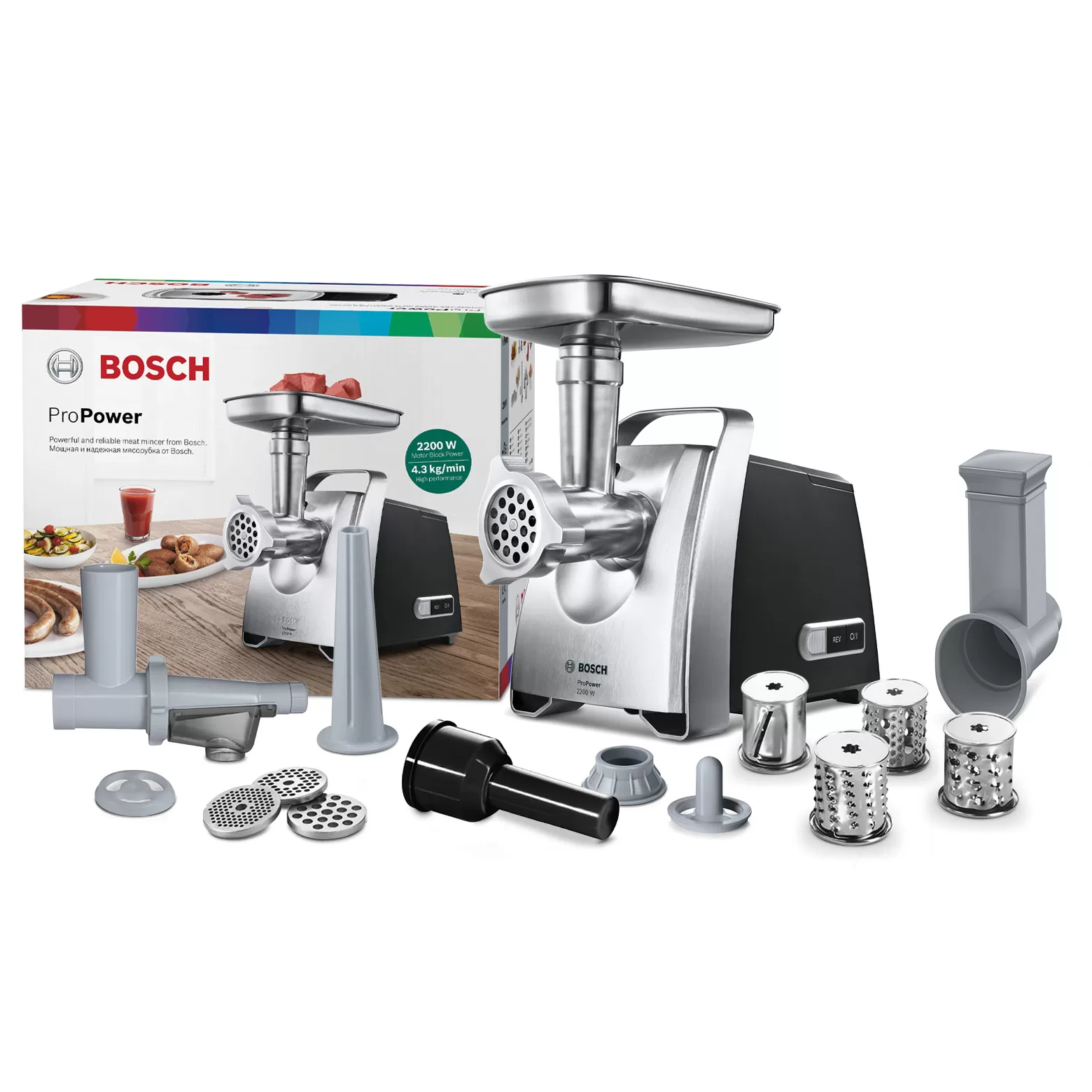 چرخ گوشت بوش مدل MFW68660 یک دستگاه کارآمد است که با توان حداکثری 2200 وات به شما در آماده سازی مواد غذایی کمک می نماید. گاهی اوقات باید مقدار زیادی گوشت در مدت زمان کوتاهی آماده شود. این چرخ گوشت با کیفیت بالا و به لطف وجود موتور قدرتمند (Pro Power) در پردازش سریع مقادیر زیاد گوشت متخصص است و بسیار سریع و قابل اطمینان کار می کند. چرخ گوشت باید از کیفیت خوبی برخوردار باشد تا در زیر بارهای سنگین عملکرد خوبی داشته باشد. این چرخ گوشت دارای استانداردهای کیفیت بالای آلمانی برند بوش است که طول عمر، قابلیت اطمینان و بهترین عملکرد فنی را در طول سالیان متمادی تضمین می کند.