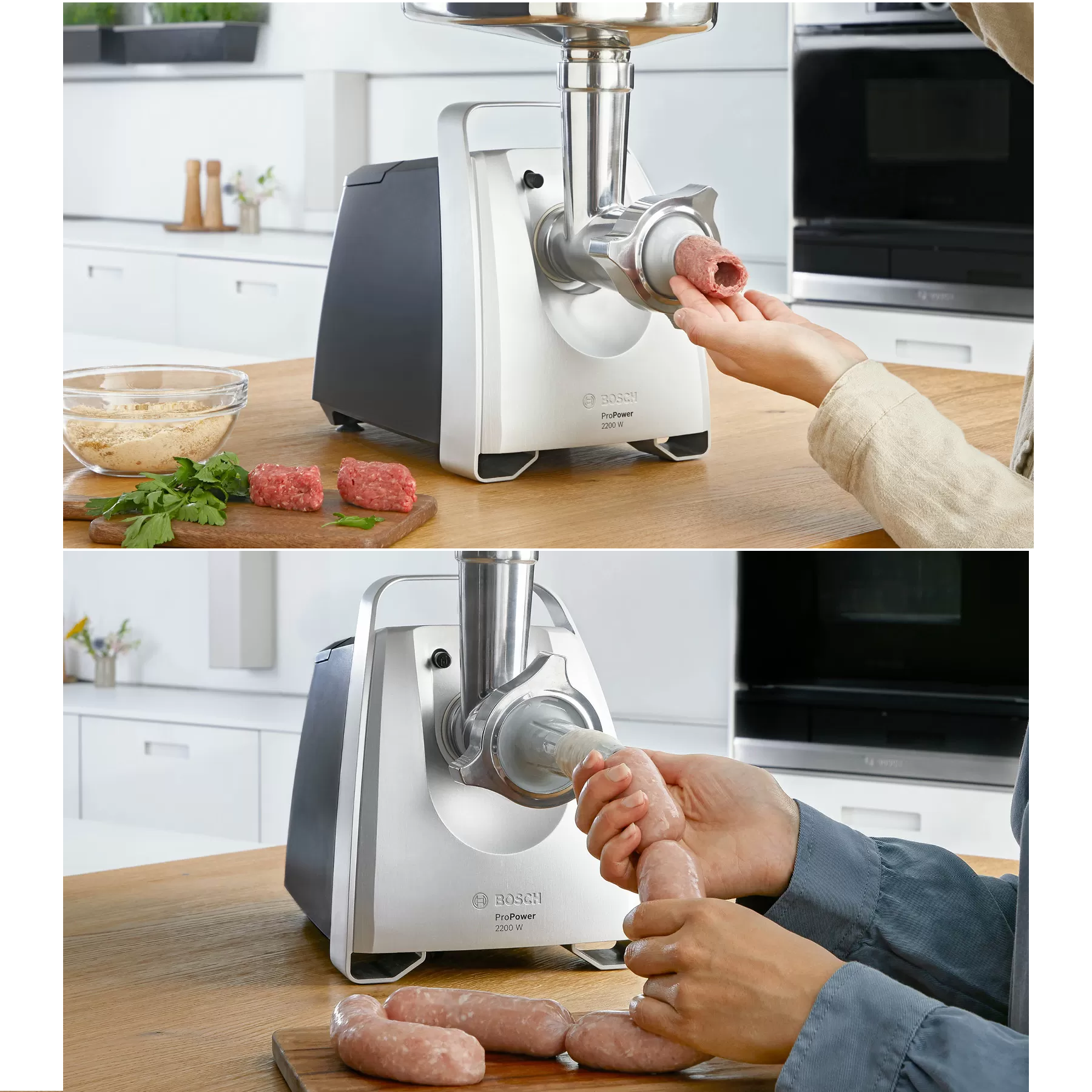 سوسیس خانگی را میتوان با توجه به ذائقهی شخصی خودتان تهیه کرده و مهمانهایتان را شگفت زده کنید. با استفاده از سری سوسیس ساز چرخ گوشت می توانید انواع سوسیس مرغ، گوشت گاو و یا سوسیس گیاهی خوشمزه خود را بسازید و آن را نوش جان کنید. همچنین علاوه بر سری سوسیس ساز، سری کپه ساز نیز به همراه چرخ گوشت بوش وجود دارد.