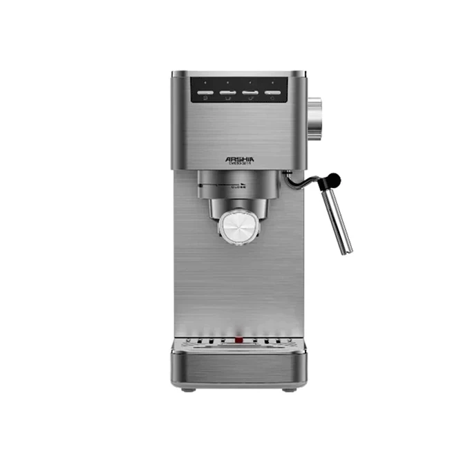 اسپرسوساز عرشیا مدل EM270 3214 محصولی از برند ARSHIA می باشد. این وسیله یکی از ضروریات دوستداران قهوه و نوشیدنی های داغ است. این مدل اسپرسوساز هم برای مصارف خانگی هم کسب و کارهای کوچک مناسب است. جنس اسپرسوساز عرشیا مدل 3214 از استیل ضد زنگ است که هم ظاهری زیبا دارد و هم بسیار محکم و بادوام است. در زیر دستگاه پایه های ضد لغزش تعبیه شده تا ایمنی دستگاه را بالا ببرد. همراه این محصول فیلتر مخصوص پودر قهوه، اسکوپ اندازه گیری و تمپر پلاستیکی قرار دارد و همچنین دارای یک نازل بخار است که قابلیت تولید کف شیر را دارد.