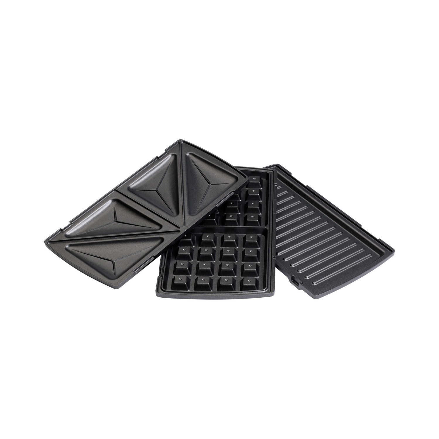 دستگاه ساندویچ ساز و گریل سنکور مدل SSM 9300SS دارای 3 سینی مجزا می باشد که جنس آنها از تفلون بوده و همین سبب می شود تا شما بتوانید مواد را به راحتی بعدِ پخت از سینی جدا کنید. هر کدام از این سینی ها دارای کاربردی متفاوت اند؛ مثلا برای گریل کردن گوشت و درست کردن کباب شما می توانید از سینی گریل که روی آن دارای شیار است استفاده نمایید. همچنین برای درست کردن اسنک از سینی مخصوص اسنک که مثلث شکل است و یا برای تهیه ی وافل، سینی مربعی آن را مورد استفاده قرار دهید.