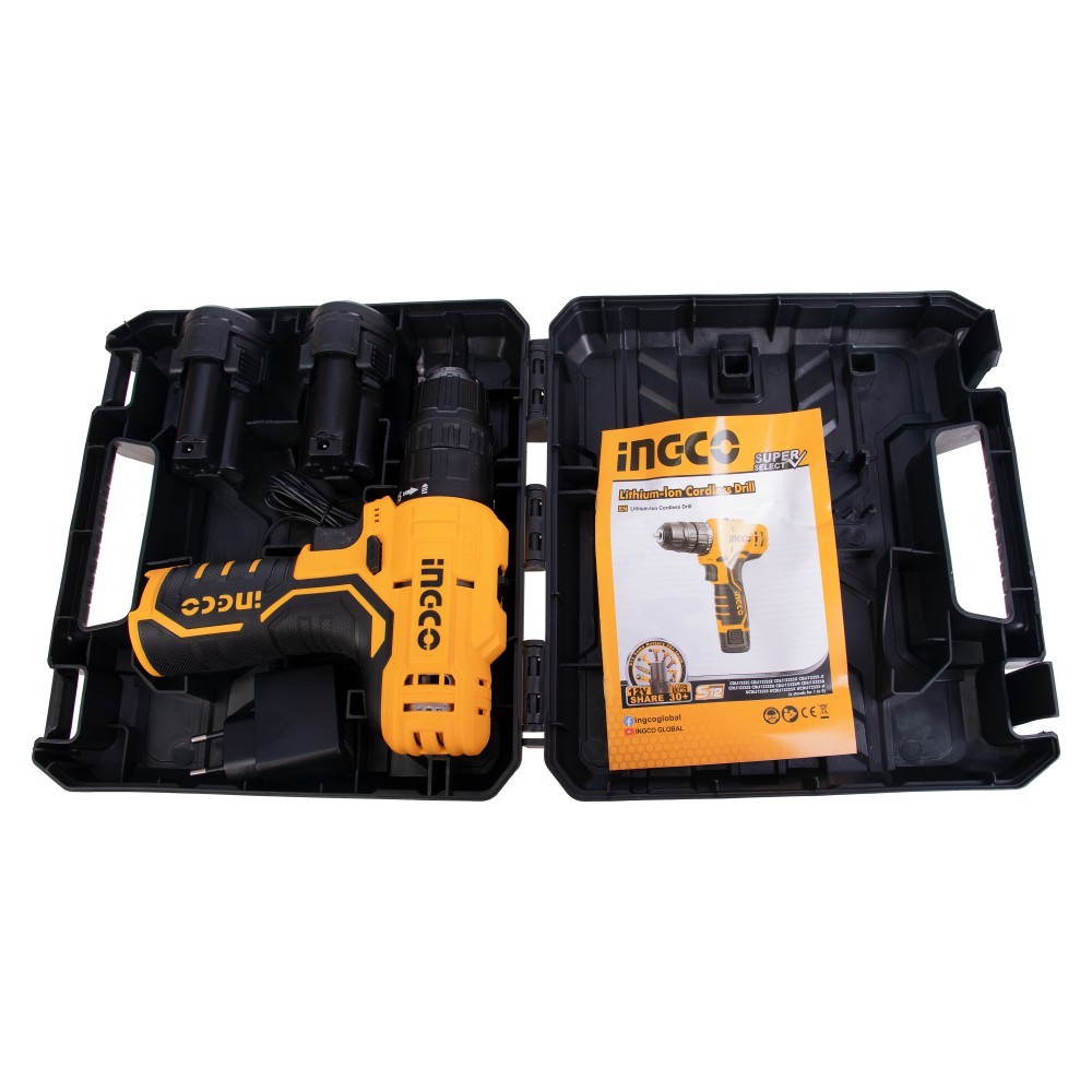 دریل پیچ گوشتی شارژی مدل iNGCO CDLI12325 دارای دستهی نرم با طراحی ارگونومیک است که در هنگام کار کردن راحتی را برای کاربر به همراه دارد. بر روی قسمت جلویی یک چراغ LED تعبیه گردیده است که برای کار در محیط تاریک از استفاده خواهد شد. این دستگاه دریل شارژی در داخل کیف BMC مشکی رنگ قرار دارد. همچنین به همراه دریل شارژی یک عدد سری (بیت) 65 میلیمتر از جنس کروم – وانادیوم، شارژر، یک عدد باطری 1.5 آمپر یدک ارائه شده است.