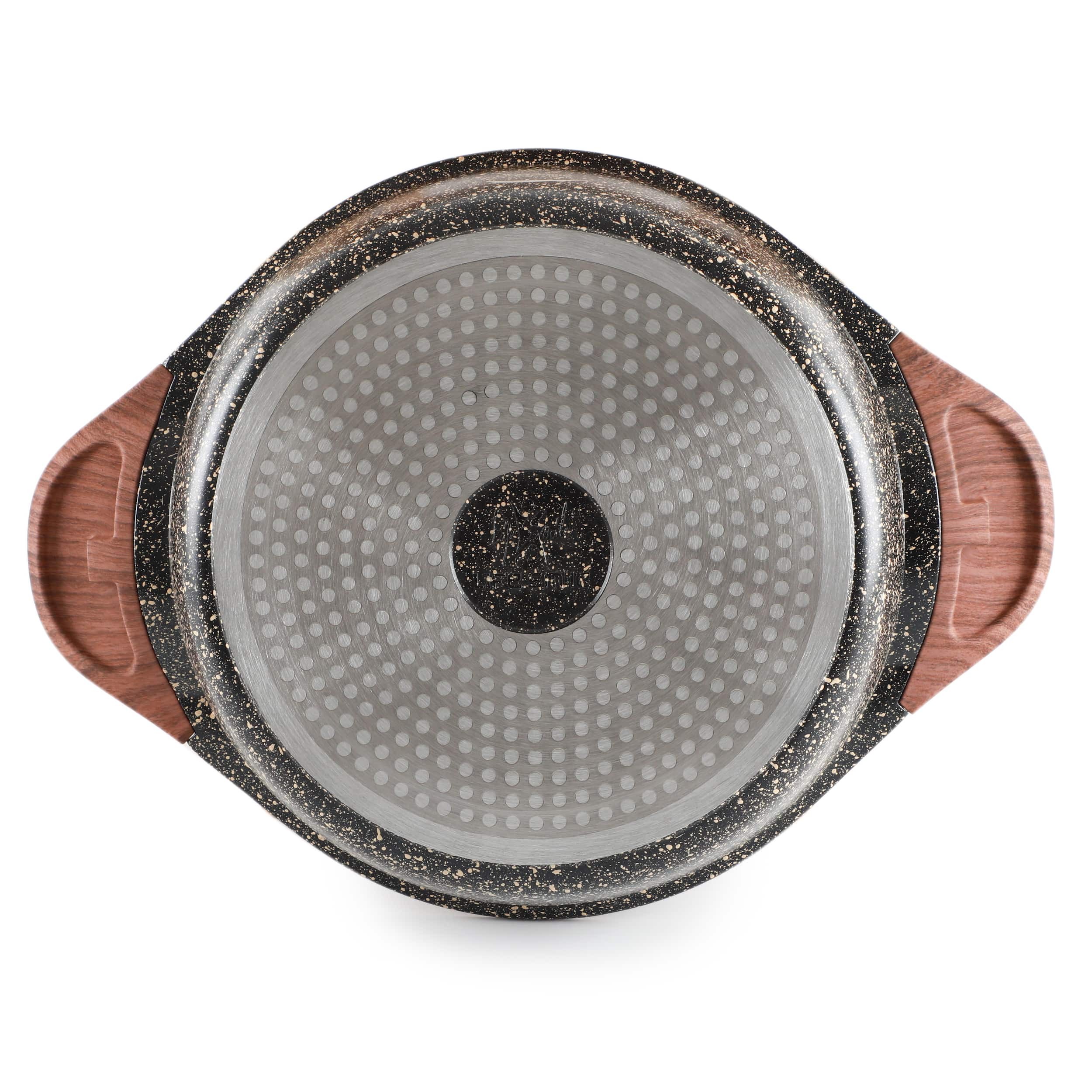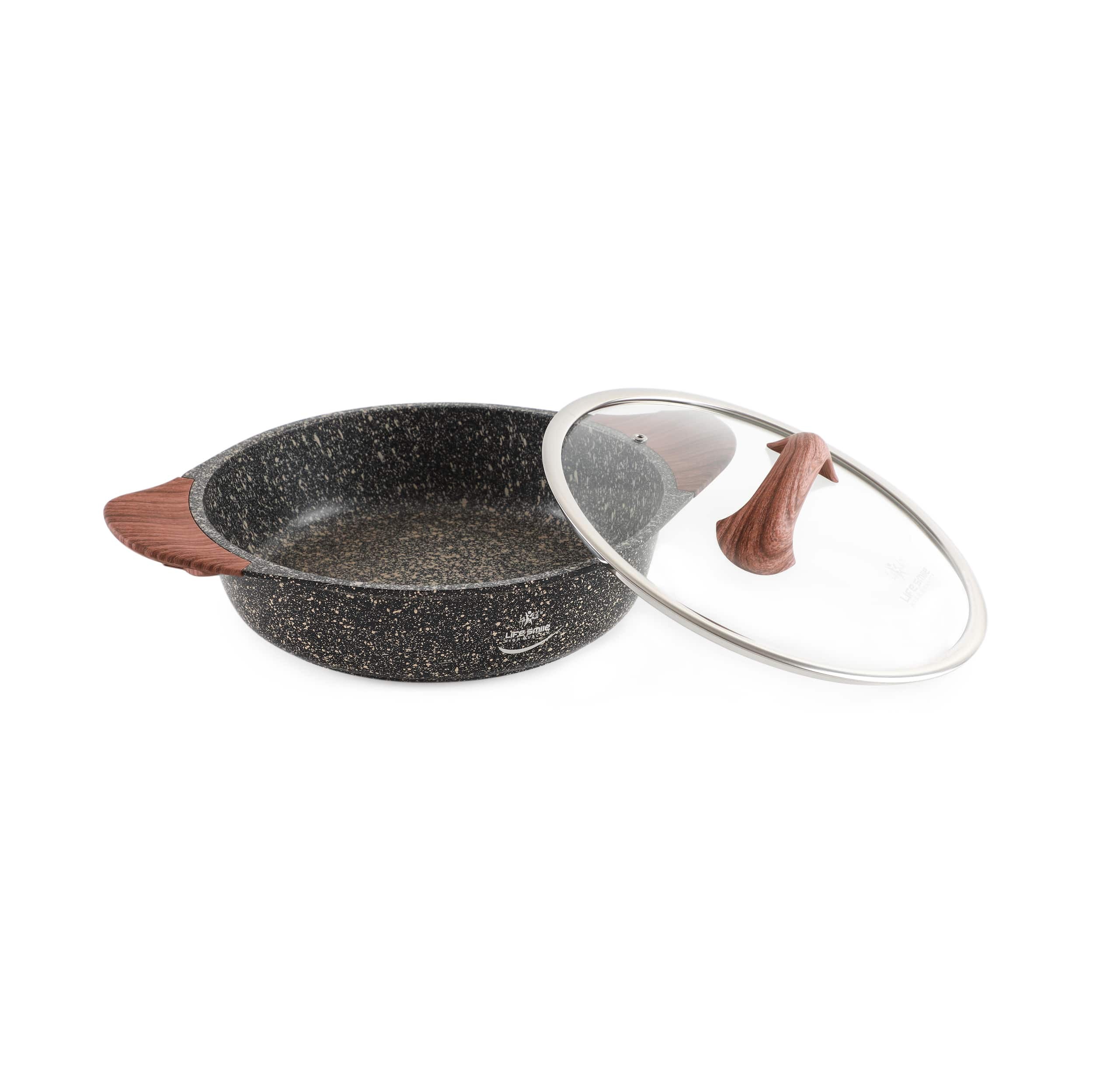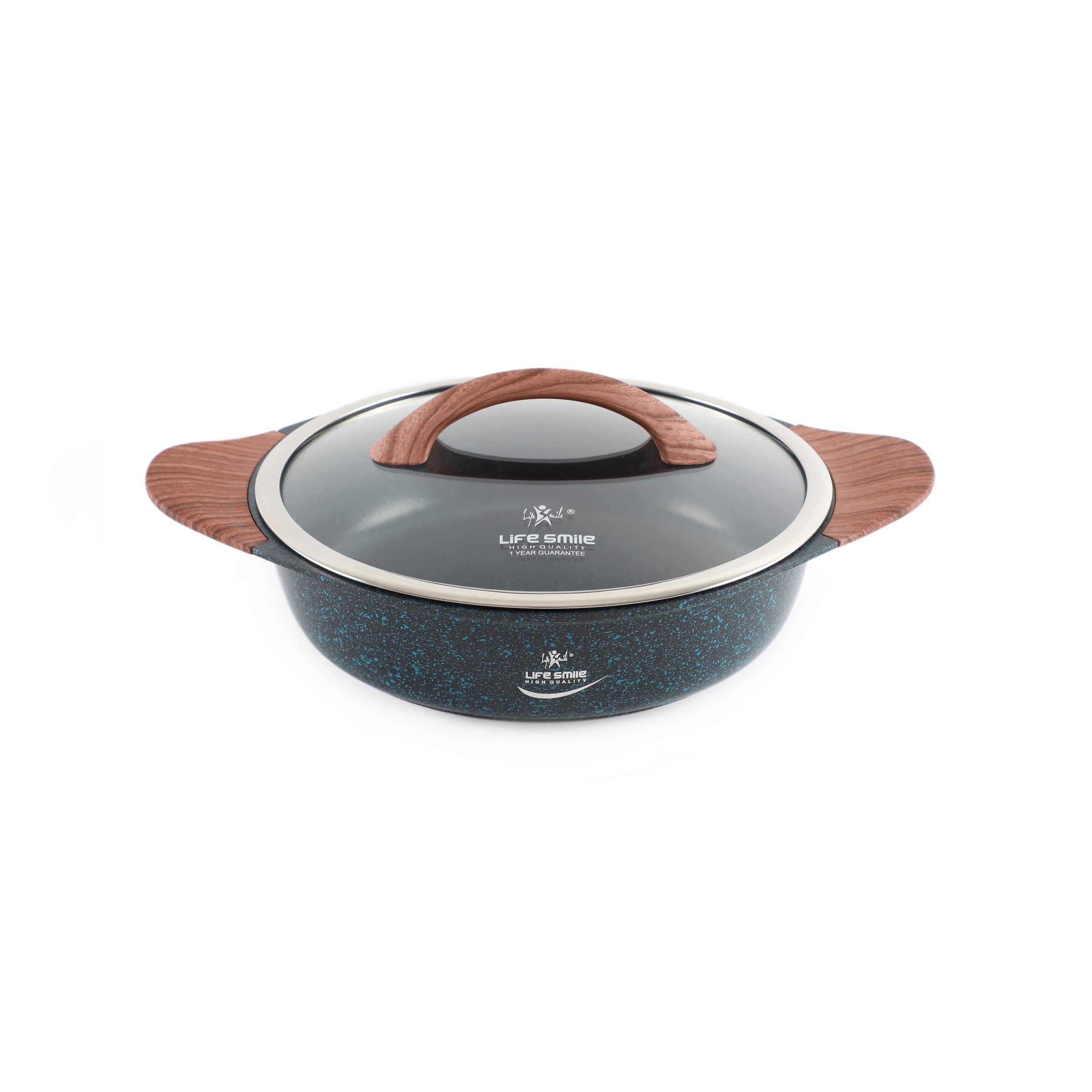 ماهیتابه گرانیتی لایف اسمایل مدل LIFEP5SHR28 یکی دیگر از محصولات برند معروف لایف اسمایل است. سایز تابه 28 سانتی متر است. بدنه اصلی آن از آلومینیوم ریختهگری ساخته شده که رسانای بسیار خوبی است و در برابر حرارت های بالا تا 240 درجه سانتیگراد مقاوم است. این تابه دارای روکشی نچسب از جنس گرانیت است که باعث می شود هیچ ماده غذایی به آن نچسبد و عمل شستشو را تا حد امکان راحت می کند.
