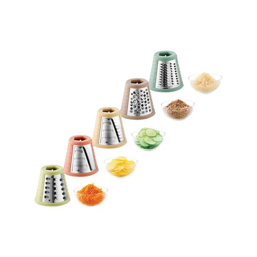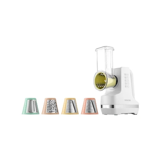 رنده برقی SENCOR SSG 4300WH دارای 5 سری از جنس استیل ضد زنگ به شکل ناودانی است که شامل 1. خلال و برش های نازک مناسب برای سیب زمینی، چیپس، میوه و سبزیجات برای تزیین غذاها. 2. رنده برای برش های موج دار که مناسب برش دادن میوه ها و سبزیجات به عنوان چاشنی غذاهای مختلف. 3. رنده درشت مناسب برای رنده کردن سبزیجات برای سوپ، تهیه کتلت سیب زمینی یا سالاد میوه و سبزیجات. 4. رنده ریز برای تهیه سالاد میوه و سبزیجات و رنده کردن پنیر. 5. رنده بسیار ریز برای آسیاب کردن آجیل، نارگیل، بادام و برای تهیه آرد سوخاری است.