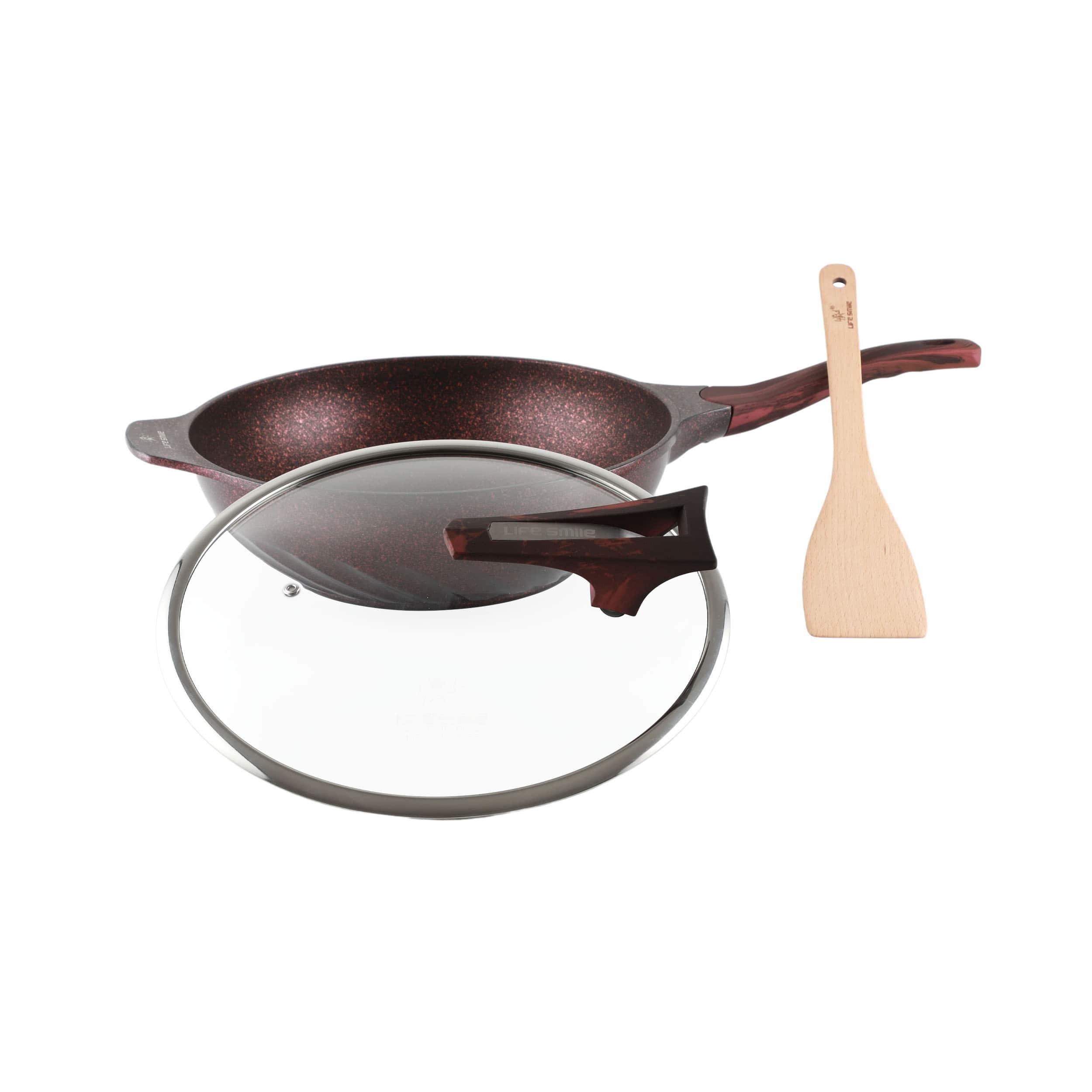 تابه FLCMWOK لایف اسمایل دارای کفه القایی بوده و می توان روی انواع اجاق های برقی، گازی و سرامیکی استفاده کنید. درب شیشه ای آن باعث می شود به مواد غذایی در حال پخت تسلط داشته باشید. همچنین دریچه بخار درب آن از سر رفتن غذا جلوگیری می کند. دسته بلند این محصول به شما این امکان را می دهد که هنگام کار، به راحتی آن را جا به جا کنید. تغییر رنگ جزئی پوشش داخل تابه هیچ تاثیر منفی بر کیفیت محصول و مواد غذایی در حال پخت ندارد. سرخ کردن مواد غذایی با این محصول هیچ گونه گاز مضر PFOA را ایجاد نمی کند و آشپزی با آنها از هر نظر سالم و بهداشتی خواهد بود. همراه این تابه یک قاشق چوبی قرار داده شده است. این محصول در سه رنگ مختلف مشکی، خاکستری، زرشکی برای سلیقه های متفاوت کاربران ساخته شده است که تنوع انتخاب بالایی را به آن ها می دهد.