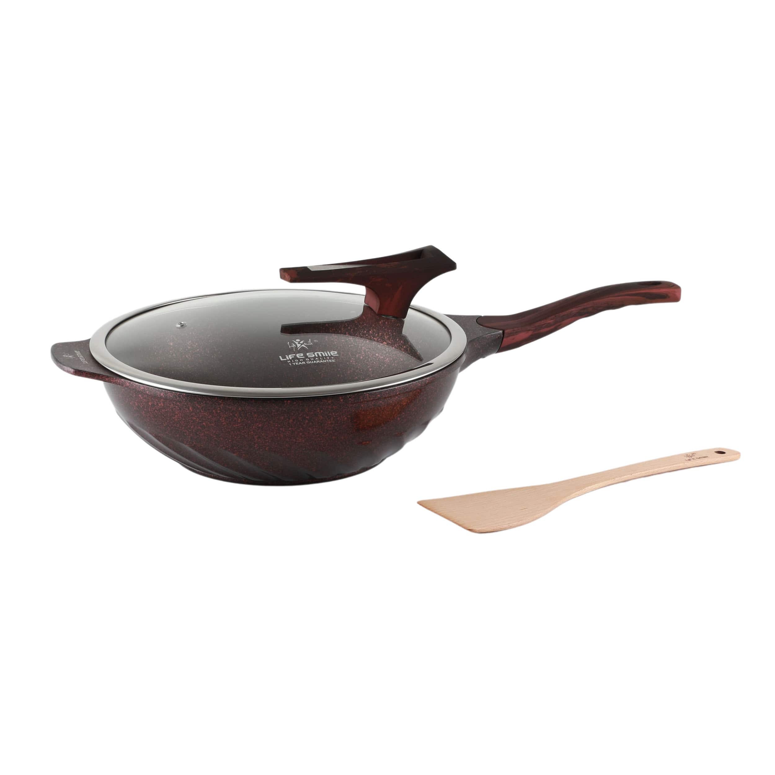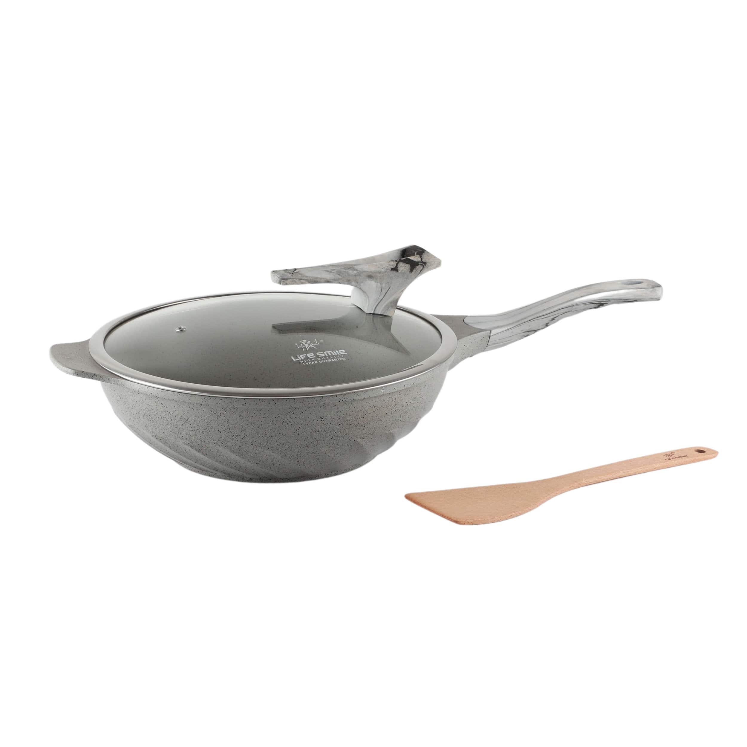 ماهیتابه لایف اسمایل مدل FLCMWOK32 یکی دیگر از محصولات این برند معروف لایف اسمایل است. سایز این تابه 32 سانتی متر است. بدنه آن از آلومینیوم ساخته شده است که باعث انتقال بهتر حرارت می شود، همچنین دارای مقاومت حرارتی بالایی است و می تواند تا حداکثر دمای 240 درجه سانتیگراد را تحمل کند. جنس دسته و دستگیره آن از جنس باکالیت بوده که تحمل حرارت های بالا را دارد. کفه این تابه دارای شعله پخش کن است و گرما را به صورت یکنواخت به تمام سطح منتقل می کند.