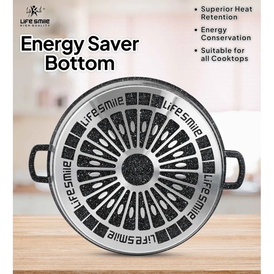 سرویس تابه لایف اسمایل گرانیتی با وزن کلی 6.5 کیلوگرم و سطح نچسب به راحتی تمیز شده و سازگاری بالایی با محیط زیست دارد. در برابر خط و خش و دمای بالا مقاوم بوده و حین آشپزی گاز مضر PFOA را متصاعد نخواهد کرد و آشپزی سالمی را تضمین می کند. این ظروف قابلیت استفاده بر روی انواع اجاق ها و همچنین مایکروویو را دارا می باشد.