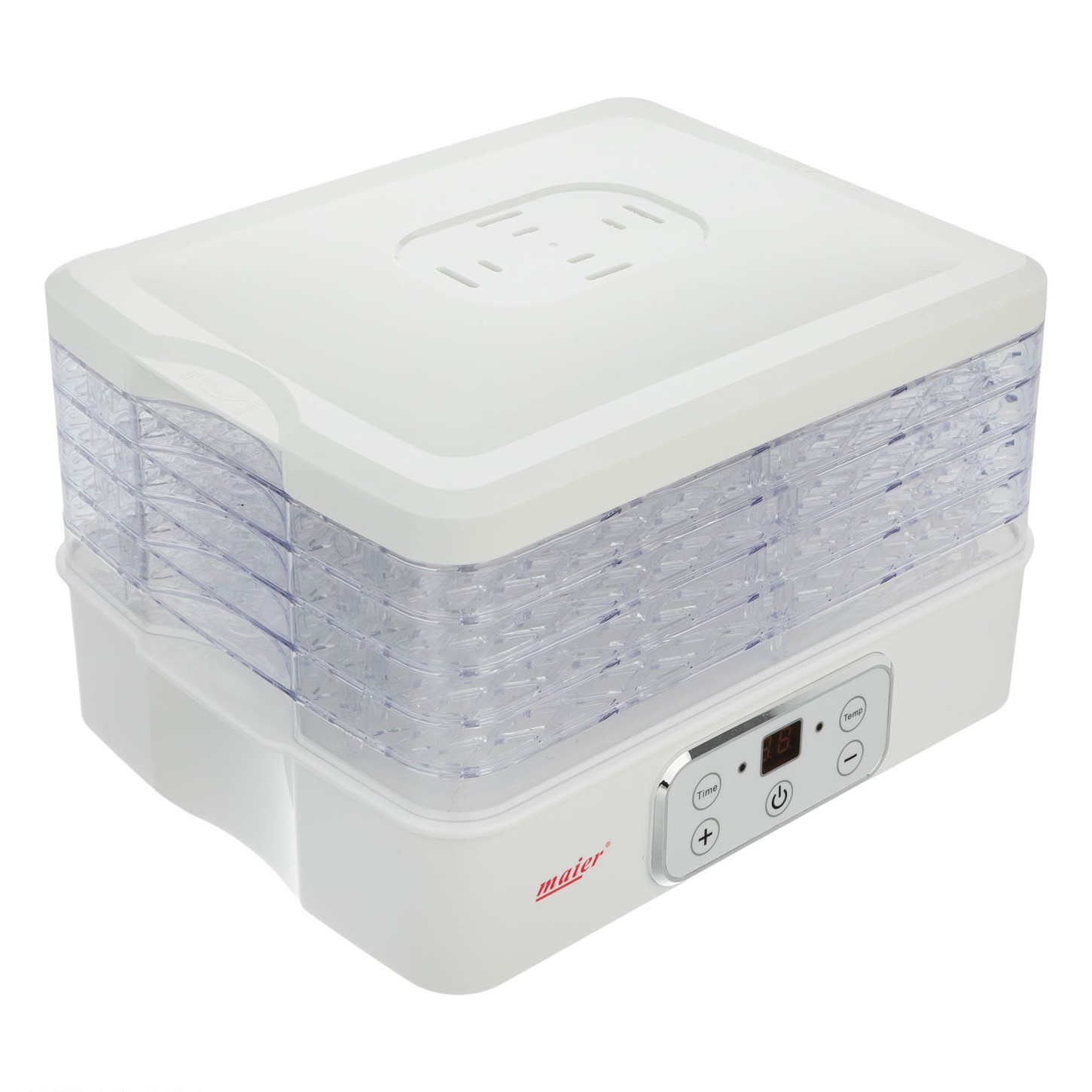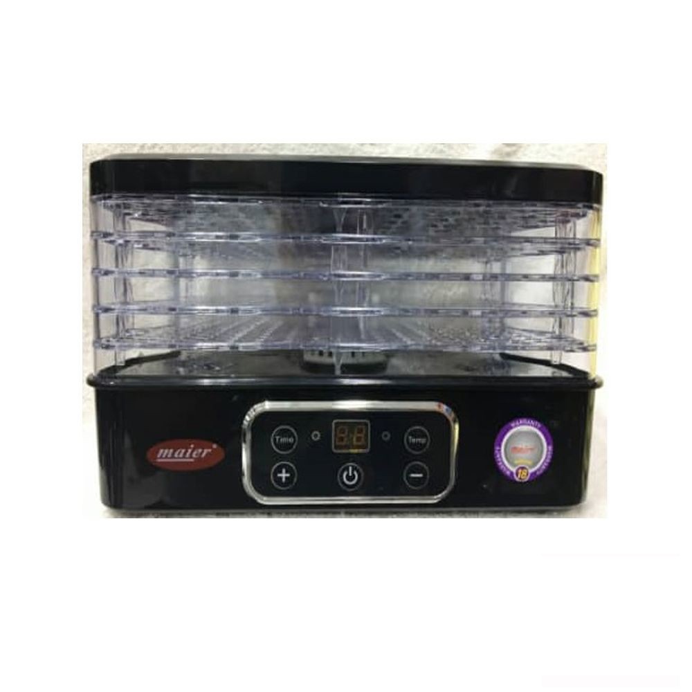 میوه خشک کن مایر مدل MR-3939 یک محصول ایدهآل برای کسانی است که به میوه خشک شده علاقه داشته و تمایل دارند همیشه این نوع تنقلات سالم را در منزل خود داشته باشند. این دستگاه با توان 240 وات به خوبی انواع میوه، گل و سبزیجات را خشک خواهد کرد. جنس بدنه میوه خشک کن Maier از جنس پلاستیک با کیفیت بوده و دارای پنج طبقه سینی از جنس پلاستیک شفاف و با قابلیت چرخان میباشد. میوههای برش داده شده به صورت یکنواخت بر روی سینیها قرار داده میشود و با عبور و گردش گرما داغ کنترل شده، میوهها با کیفیت عالی خشک میشوند. هرچه سایز میوهها کوچکتر باشد (5 میلیمتر) سرعت خشک شدن بیشتر خواهد شد.