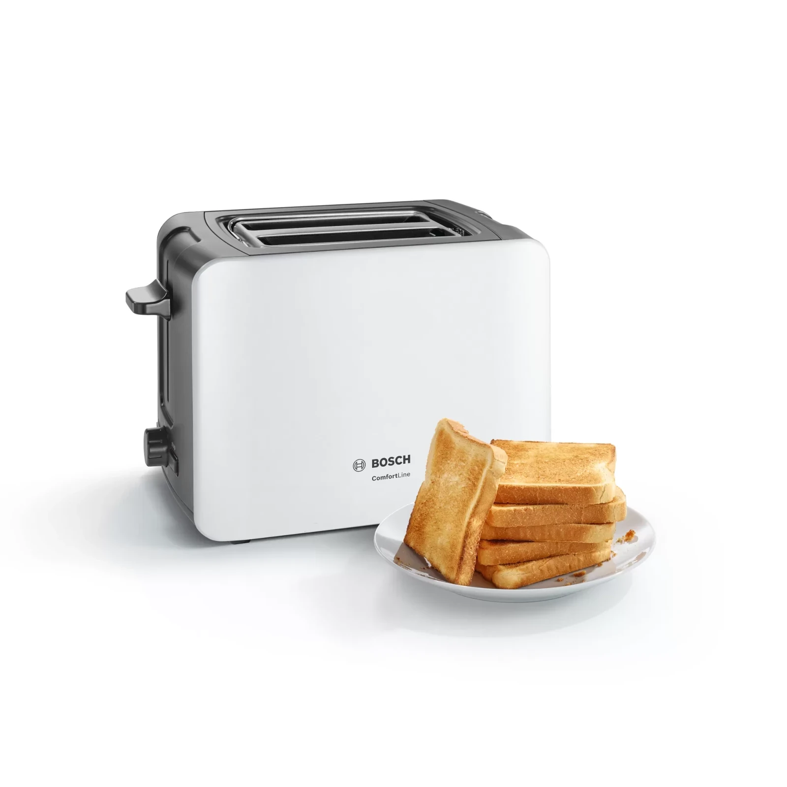 توستر نان بوش مدل TAT6A111 با تهیه نان تست خوشمزه و کروسانهای گرم نویدبخش یک روز عالی برای شما خواهد بود. این دستگاه با توان 1090وات، المنتهای بزرگ و داشتن سنسور الکتریکی عملکردی یکدست و عالی در تست کردن انواع نان دارد. در توستر بوش میزان قهوه ای شدن نان در اختیار کاربر بوده و میتواند دما را در شش حالت مختلف تنظیم کند. این محصول قابلیت یخزدایی نان را نیز داشته و حتی نان را نیز ترد میکند، گویی آن را تازه از نانوایی تهیه کردهاید.