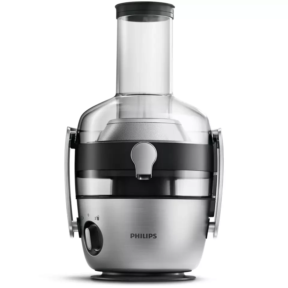 آبمیوه گیری فیلیپس مدل HR 1922 با ظاهری ساده و شیک، و با جنس بدنه استیل که از دو رنگ مشکی و نقره ای ساخته شده از محبوب ترین آبمیوه گیری های برند فیلیپس است. این دستگاه با توان 1200 وات کار میکند و از قدرت بالایی برخوردار است. دهانه ی ورودی این دستگاه بزرگ و دارای قطر 80 میلی متر است که این امکان را به کاربر میدهد تا میوه ها و مرکبات را بدون برش اولیه به درون محفظه ریخته و آبگیری کرد. پارچ آبمیوهای که همراه دستگاه وجود دارد، از جنس پلاستیک شفاف (SAN) بوده یک لیتر آبمیوه را ذخیره میکند.