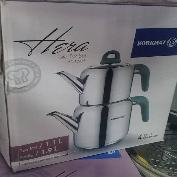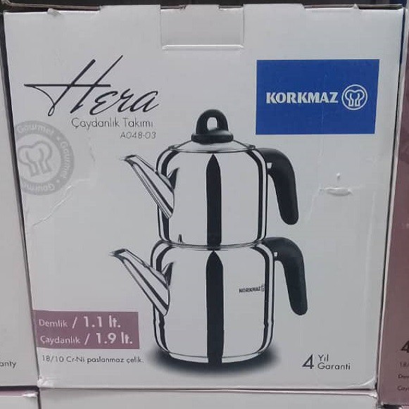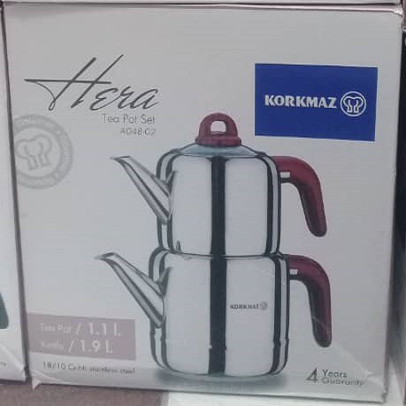 برای تمیز کردن این ست میتوانید آن را در داخل ماشین ظرفشویی قرار دهید و شستشو دهید. کتری و قوری مدل Korkmaz Hera A048 در چهار رنگ مختلف تولید میشود. رنگ دستههای این مدل با هم متفاوت است و دارای چهار رنگ بنفش (کد A048)، طوسی (کد A048-1)، قرمز (کد A048-2) و مشکی (کد A048-3) میباشد.