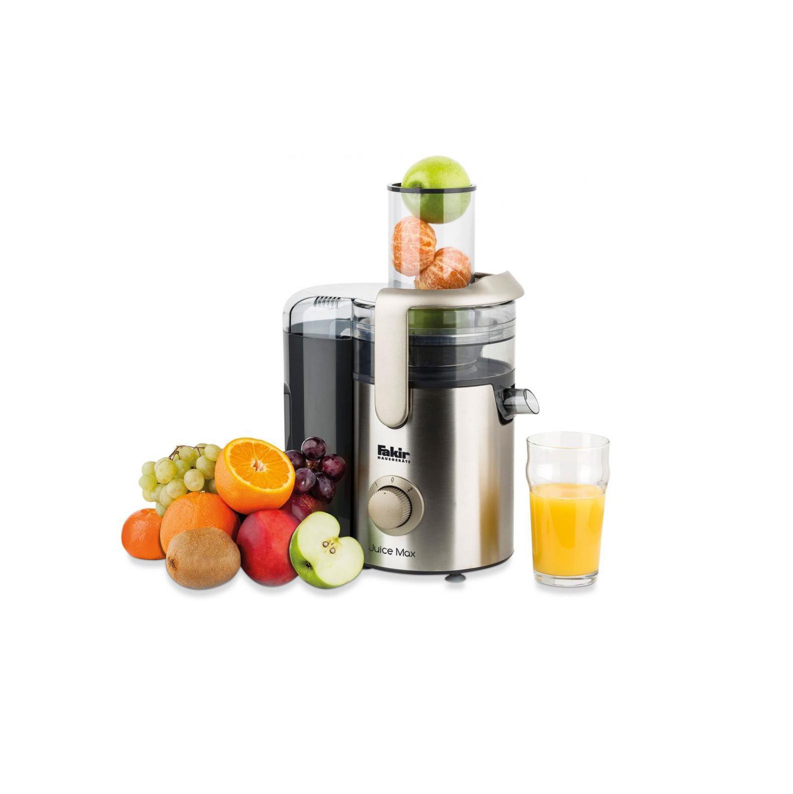 آبمیوه گیر تک کاره فکر مدل جویسر مکس Fakir Juicer Max تولید شرکت فکر می باشد که یکی از شرکت های نام آشنای تولید کننده لوازم خانگی با کیفیت است. بدنه این آبمیوه گیر فکر از جنس استیل ضد زنگ با طراحی خاص است. به وسیله ی این آبمیوه گیر می توانید آب تمام میوه ها و سبزی جات را بگیرید. توان موتور آن 1000 وات است و جنس فیلتر آن از استیل ضدزنگ می باشد. گنجایش مخزن آب میوه گیر Juice Max فکر مقدار 1.5 لیتر است و همچنین قابلیت تنظیم سرعت در دو سرعت متفاوت را در اختیار کاربر خود قرار می دهد. این محصول فکر دارای پایه های ضدلغزش و قفل ایمنی نیز می باشد.