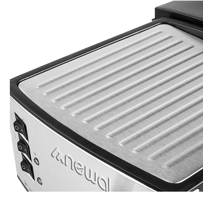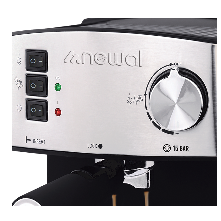 قهوه ساز NEWAL COF-3855 ESPRESSO MACHINE دارای حالت آماده به کار است و هر زمان که بخواهید می توانید از آن استفاده کنید. در این دستگاه سیستمی تعبیه شده که در صورت گرما و فشار بیش از حد، دستگاه به صورت خودکار خاموش شده و از حوادث احتمالی جلوگیری می کند. این دستگاه مجهز به سینی گرم کننده است که شما می توانید قبل از ریختن قهوه فنجان ها را بر روی آن قرار دهید تا گرم شوند که هم از ترک خوردن آن ها جلوگیری کنید و هم باعث می شود نوشیدنی شما دیر سرد شود. اسپرسوساز نوال مدل 3855 برای تنظیمات دارای یک ولوم چرخشی برای تنظیم بخار و 3 دکمه بر روی بدنه خود است که کار با آن ها بسیار آسان است. این دستگاه دارای سیمی به طول 1 متر می باشد.