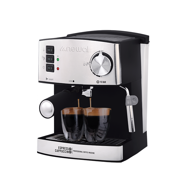 اسپرسوساز نوال مدل COF 3855 محصول برتر شرکت NEWAL می باشد. داشتن یک اسپرسوساز در خانه می تواند لذت نوشیدن یک فنجان قهوه داغ را برای تان به ارمغان بیاورد. اسپرسوساز نوال مدل 3855 دارای توان 850 وات و پمپ قوی 15 بار است که می توانید با آن اسپرسو، آب جوش، موکا، کاپوچینو و شیر گرم را تهیه کنید و قابل استفاده برای هم دانه قهوه و هم آسیاب شده آن می باشد. این دستگاه دارای 2 نازل قهوه می باشد که هم زمان می توانید 2 فنجان را پر کنید و در زمان صرفه جویی کنید. همچنین یک نازل بخار دارد که با آن می توانید بخار و شیر را مخلوط کرده و یک کف شیر غلیظ تهیه کنید. اسپرسوساز نوال دارای بدنه ای از استیل ضد زنگ و پلاستیک مقاوم بوده که بسیار بادوام است و با رنگ های نقره ای و مشکی ظاهری بسیار زیبا دارد که با هر دکوراسیونی ست می شود.