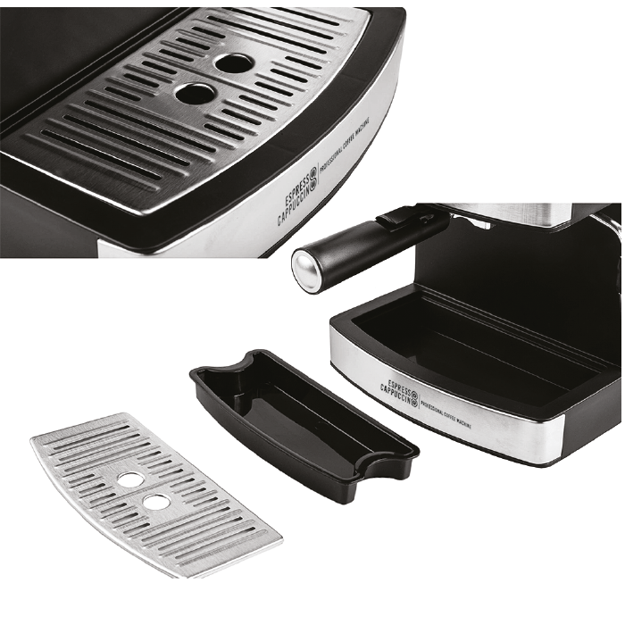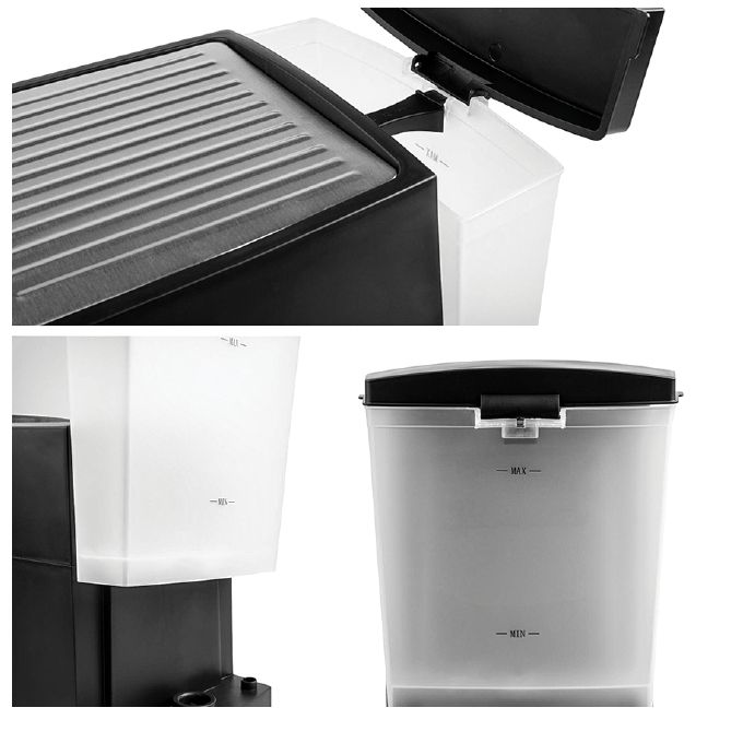 اسپرسوساز NEWAL مدل 3855 دارای مخزن آب با حجم 1.6 لیتر است که از جنس پلاستیک بوده و شفاف می باشد تا در صورت تمام شدن آب اقدام به پر کردن مجدد آن نمایید. مخزن آب قابلیت جدا شدن دارد تا به راحتی آن را از آب پر کنید. همچنین دارای فیلتر می باشد تا از ورود رسوب آب به قهوه جلوگیری کند و بسیار مقاوم و ضد ضربه است. یکی دیگر از امکانات اسپرسوساز نوال مدل 3855 سینی ضد چکه است که در زیر فنجان ها قرار می گیرد و زمانی که قهوه را داخل فنجان ها می ریزید اضافه های آن بر روی این سینی ریخته شده و مانع از کثیفی محیط می شود. جنس این سینی استیل ضد زنگ بوده و قابل جدا شدن است تا به راحتی تمیز شود. همچنین دارای فیلتر قهوه دو کاره از جنس استیل ضد زنگ که هم برای دانه های قهوه و هم پودر آن قابل استفاده است.