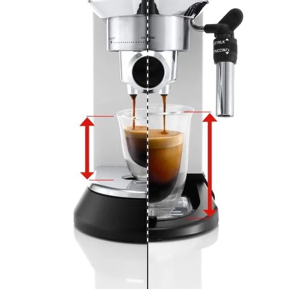 از ویژگی های دیگر اسپرسوساز Delonghi EC685 وجود سینی چکه گیر در قسمت زیرین است که چندکاره است و هم برای جلوگیری از پخش شدن قهوه بر روی سطح دستگاه و اطراف آن استفاده می شود و هم دو طبقه است و برای تنظیم ارتفاع فنجان و لیوان تا نازل ها مورد استفاده قرار می گیرد. علاوه بر این سینی گرم نگه دارنده فنجان و لیوان در قسمت بالای این دستگاه تعبیه شده است، هرچقدر بدنه لیوان و فنجان دمای بیشتری داشته باشد عطر و طعم به یادماندنی تری از قهوه دریافت خواهید کرد.