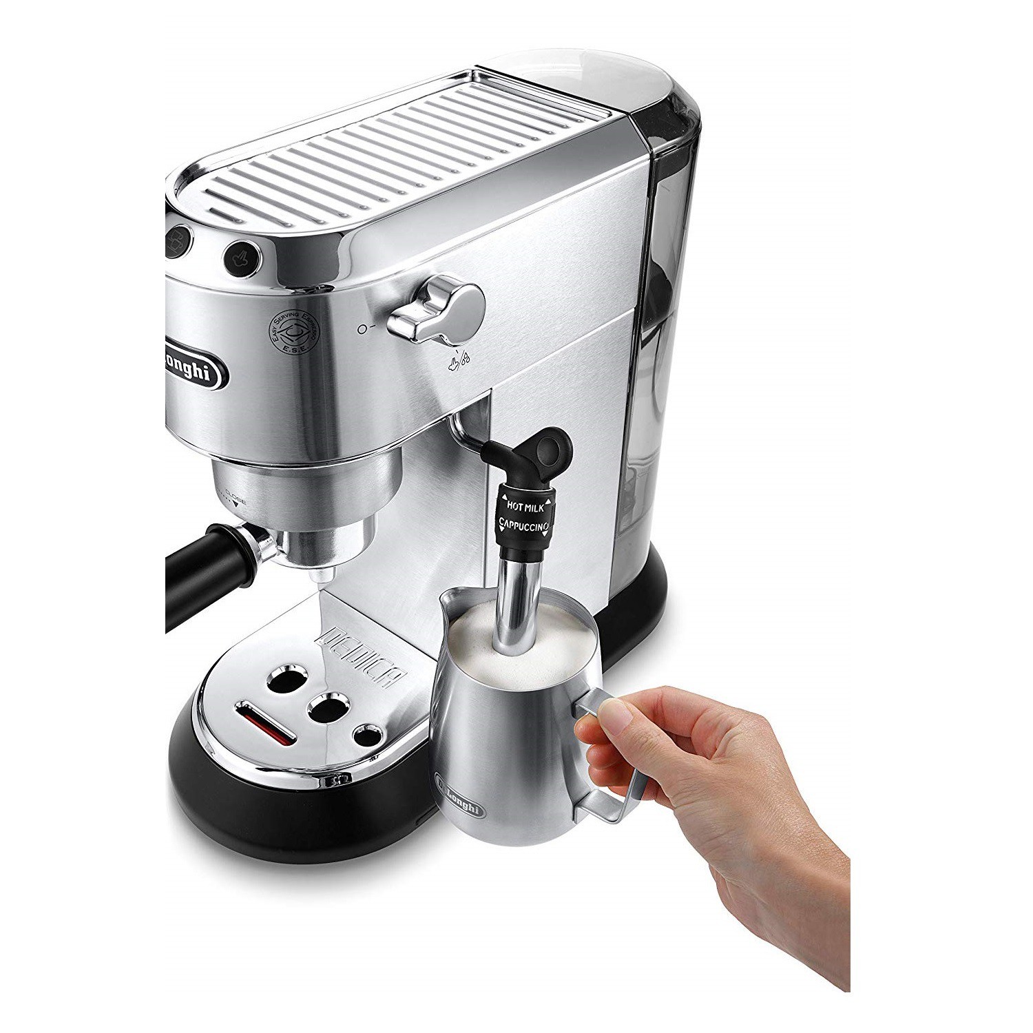 اسپرسوساز حرفه ای مدل 685 دلونگی امکان تهیه یک کاپوچینوی خانگی اما عالی را برای شما فراهم می آورد. در مرحله اول لیوان را از شیرسرد به میزان دلخواه پرکنید و نازل بخار را فعال کنید، در این مرحله میزان فشار بخار قابل تنظیم است، پس از اینکه کف شیر به میزان غلظت دلخواهتان رسید، از قسمت اسپرسوساز استفاده کنید و قهوه اسپرسو را به کف شیر اضافه کنید، کاپوچینوی اماده نوشیدن است.