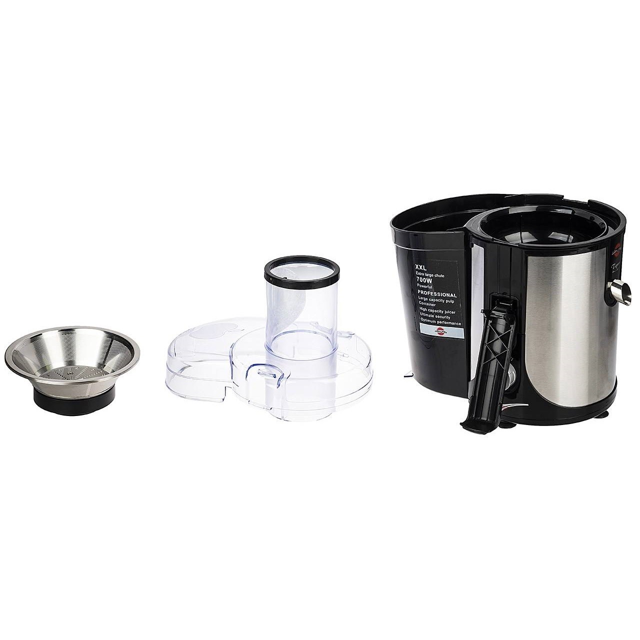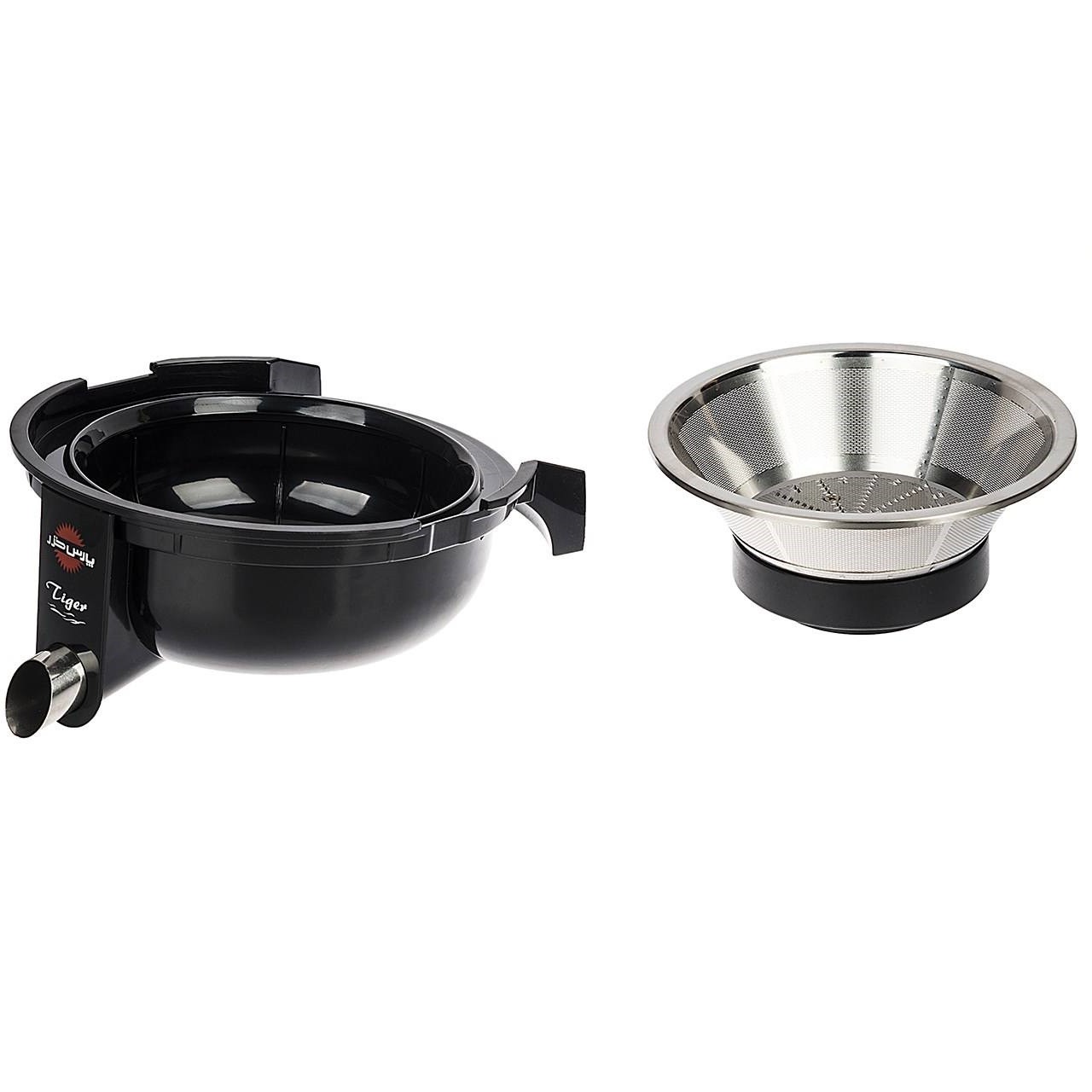 قطعات آبمیوه گیری پارس خزر مدل تایگر Tigerآبمیوه گیری پارس خزر مدل Tiger مجهز به یک پارچ شفاف، درب دار و پلاستیکی با گنجایش 1 لیتر است که در زیر خروجی آبمیوه قرار می گیرد. پارچ نه تنها مانند چکه گیر عمل کرده و از ریختن آب میوه به اطراف جلوگیری می شود، بلکه می توان درب را بر روی آن قرار داد و آن را در یخچال نگهداری کرد. فیلتر و تیغه این دستگاه از جنس استیل ضد زنگ و بسیار با کیفیت ساخته شده است. برای تمیزکاری آسان‌تر فیلتر، به همراه دستگاه یک عدد برس تمیزکاری ارائه می‌شود. مخزن تفاله گیر گنجایش 2 لیتر تفاله را دارد، پس برای آب گیری تعداد زیادی میوه مناسب است و نیازی به تخلیه آن در حین کار نیست.