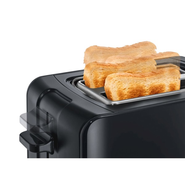 گاهی اوقات به یک نان تست قهوه ای طلایی فکر می کنید، ولی نتیجه آنطور که انتظار می رود، نخواهد بود. با توستر BOSCH TAT6A113، می توانید دقیقاً نان تست مورد نظر خود را آماده کنید، بدین شکل که با استفاده از متمرکز کننده خودکار، نان در مرکز المنت ها قرار می گیرد و به طور یکنواخت برشته می شود. گاهی اوقات شما فقط می خواهید یک تکه نان کوچک را برای صبحانه برشته کنید، و آن را از محفظه بردارید، به لطف طراحی هوشمندانه بالا برنده (High Lift)، دیگر مشکلی نیست؛ زیرا نان تست به اندازه ای بالا می آید که انگشتان شما نسوزند.