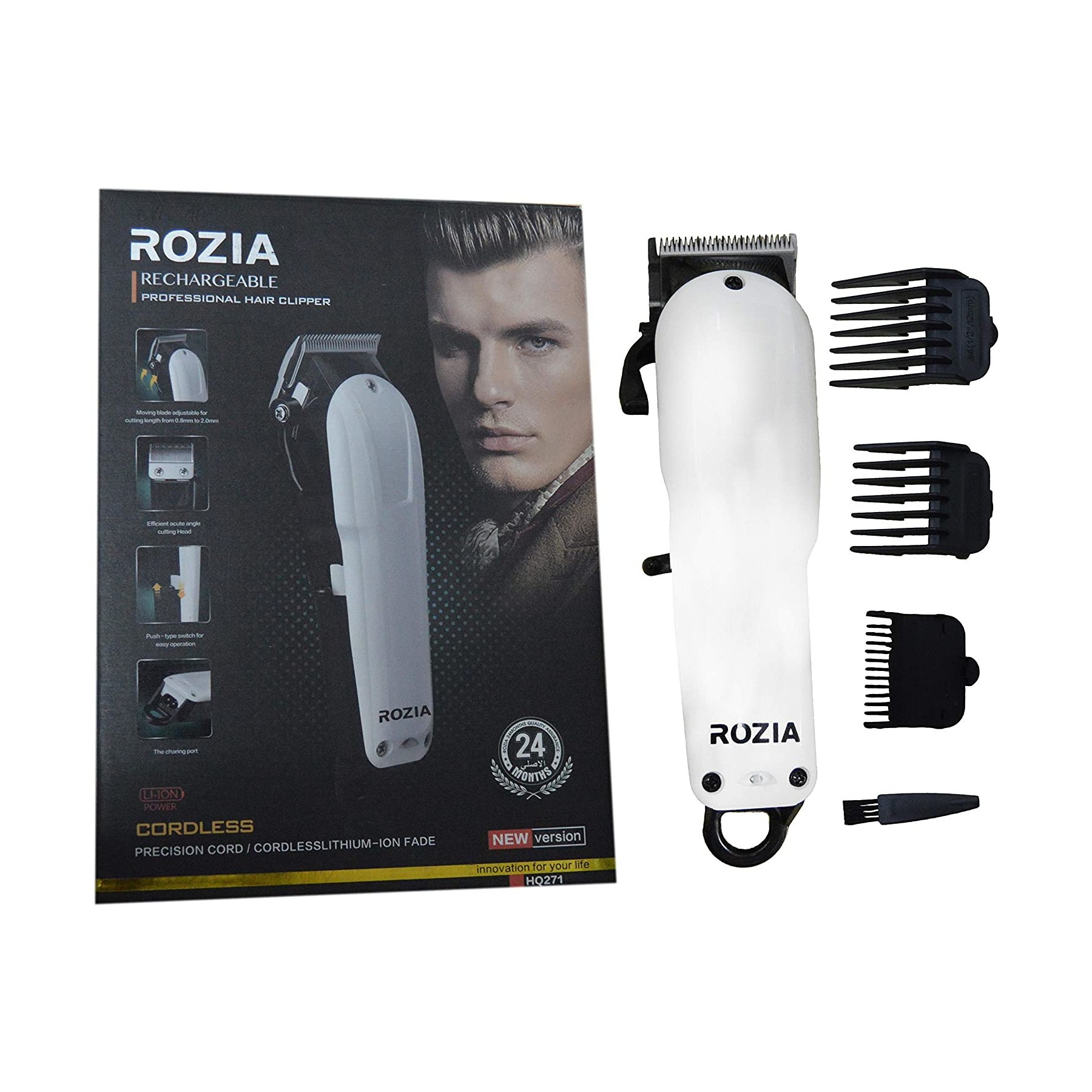 این ماشین ساخت کشور روزیا با قدرت موتور بالاست . دارای اهرم تنظیم اندازه اصلاح می باشد و البته به وسیله ی 4 شانه همراه در سایزهای مختلف می توانید به وسیله ی آن در سایز های دلخواه اصلاح را انجام دهید. باتری این موزر از نوع لیتیوم یونی می باشد و قابلیت شارژ سریع دارد و پس از شارژ به مدت 180 دقیقه می توانید با آن اصلاح انجام دهید.