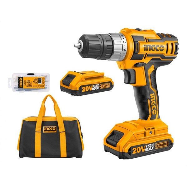 دریل پیچ گوشتی شارژی مدل iNGCO CDLI20025 دارای دسته‌ی نرم با طراحی ارگونومیک است که در هنگام کار کردن راحتی را برای کاربر به همراه دارد. بر روی قسمت جلویی یک چراغ تعبیه گردیده است که برای کار در محیط تاریک استفاده خواهد شد. این دستگاه دریل شارژی در داخل کیف برزنتی قرار دارد. همچنین به همراه دریل شارژی ست مته، شارژر، یک عدد باطری 2 آمپر یدک ارائه شده است.