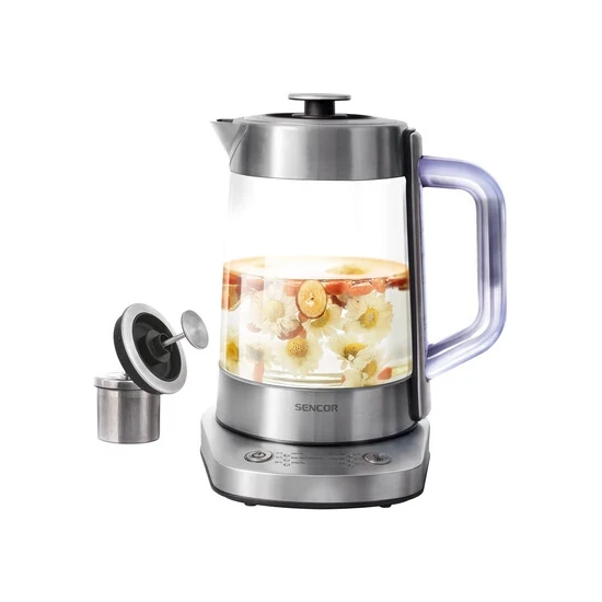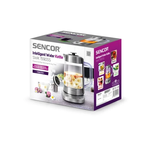 دمنوش ساز سنکور مدل SWK 1590SS محصول جدید برند SENCOR است. از این محصول می توانید به عنوان کتری برقی هم استفاده کنید و با آن چای نیز دم کنید. جنس دمنوش ساز مدل 1590 سنکور از شیشه ضد حرارت بوروسیلیکات با کیفیت بالا ساخته شده و پایه و دهانه آن از استیل ضد زنگ است و دارای دسته ای پلاستیکی علایق می باشد که به دست آسیب نمی رساند. این محصول دارای یک صافی استیل ضد زنگ قابل جا به جایی همراه با درب است که می توانید برای تهیه دمنوش از آن استفاده کنید. یک درب دیگر از جنس پلاستیک با دور استیل نیز دارد که برای مواقعی که فقط آب را بجوشانید می توانید از آن استفاده کنید.