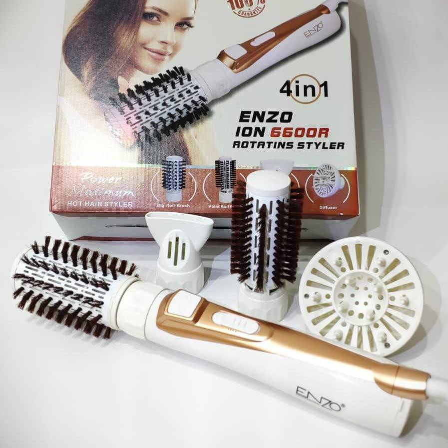 سشوار چرخشی انزو مدل Enzo En-748 محصول جدید برند Enzo می باشد که نیاز سالن کاران و آرایشگران، همچنین بانوان را در داخل خانه برای داشتن یک سشوار که در عین خشک کردن موها به آن ها نیز حالت دهد، رفع خواهد کرد. به وسیله ی سشوار چرخشی 748 انزو شما می توانید درحالی که موهایتان را سشوار می کنید به آن ها حالت دهید. این سشوار چرخشی دارای ۴ سری مختلف است که دوتای آن ها برس های چرخشی و دوتای دیگر جهت استفاده از دستگاه به صورت سشوار عادی استفاده می شود که یکی متمرکز کننده هوا و دیگری پخش کننده می باشد. پس با داشتن این وسیله هم سشوار خود را دارید و هم هنگام سشوار کردن می توانید موهای خود را حالت دهید.