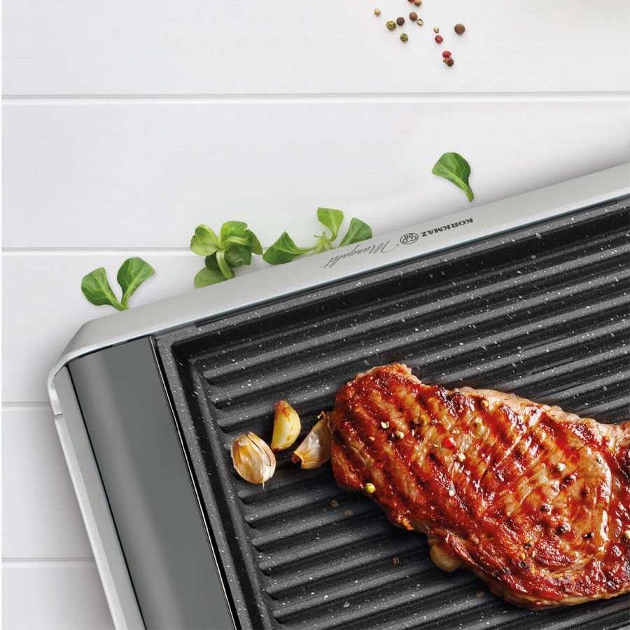 گریل KORKMAZ MANGALET A333-02 دارای سطح پخت 100 درصد آلومینیومی است که دست شما را برای پخت گوشت، ماهی و سبزیجات باز نگه می دارد. و در نتیجه شما بدون دود و استفاده از ذغال و چوب یک کباب خوشمزه را تهیه خواهید نمود. این کوره آلومینیومی گرما را به صورت یکنواخت انتقال داده و در نتیجه تمام سطوح به صورت یکدست کباب خواهد شد و کیفیت آن برای مدت طولانی تغییر نخواهد کرد. این گریل دارای مخزن جمع آوری روغن در زیر دستگاه می باشد که مانع از کثیف کاری می شود وتمام روغن های جدا شده از مواد غذایی را در خود ذخیره می کند.