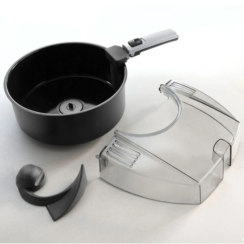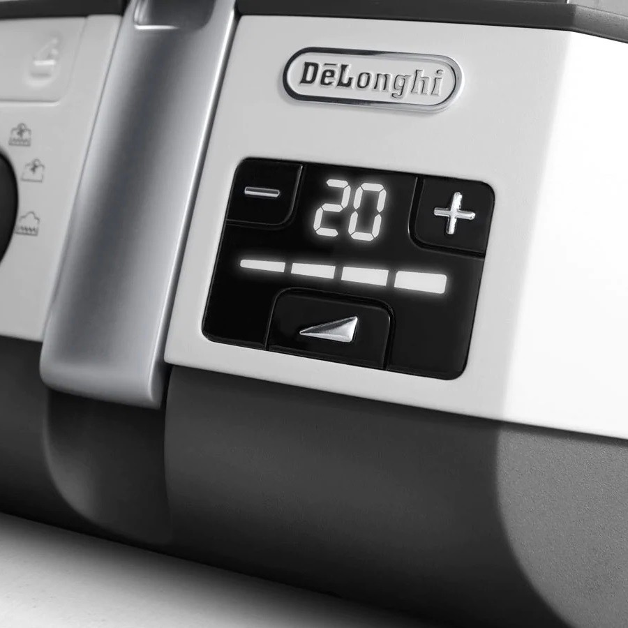 این سرخ کن و مولتی کوکر De'longhi دارای یک مخزن از جنس سرامیک نچسب و ضد خش است. این ظرف گنجایش 1.5 لیتر مواد غذایی یخ زده و 1.7 لیتر مواد غذایی تازه را دارد. برای این مخزن پخت و پز یک دسته تاشو طراحی شده است که هنگامی که آن را داخل دستگاه قرار می دهید به سمت پایین خم می شود و روی بدنه قرار می گیرد.