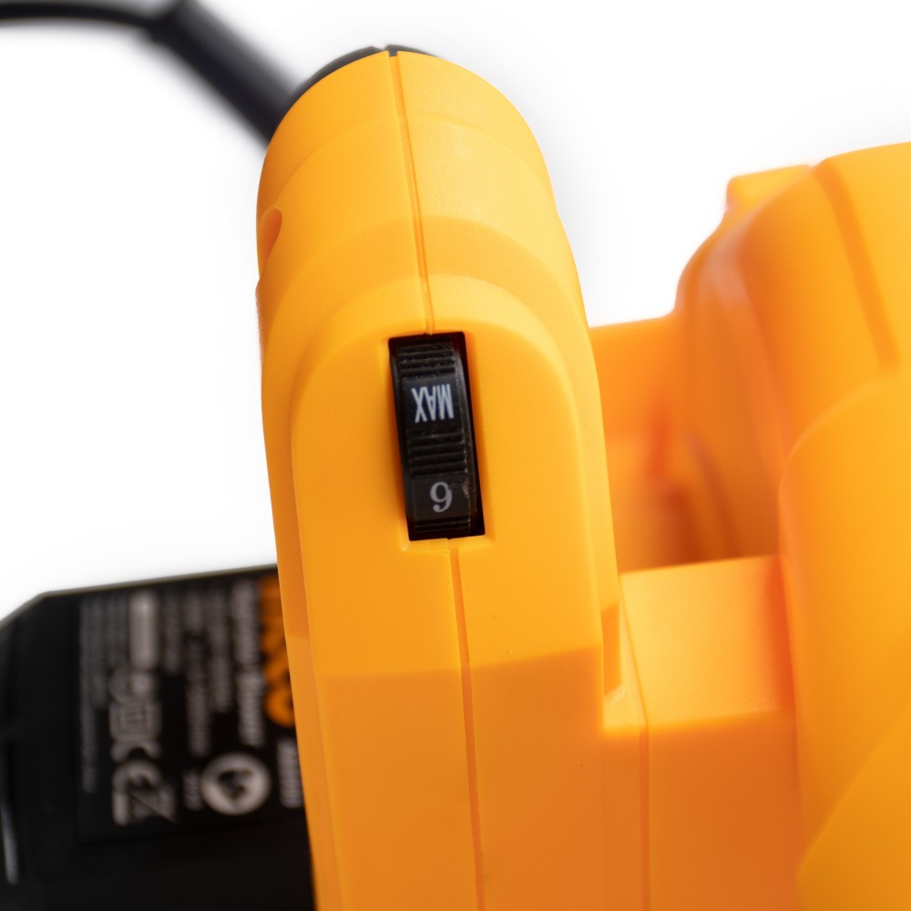 در ساخت دمنده و مکنده دیمردار iNGCO AB8008 از طراحی ارگونومیک استفاده شده و همچنین دسته دارای روکش نرم و ضد لغزش است که در هنگام کار کردن بسیار خوش دست و راحت می‌باشد. دستگاه مجهز به قفل کن کلید پاور در حالت روشن بوده که به کاربر این اجازه را خواهد داد به طور مستمر آن را فعال نگه دارد.
