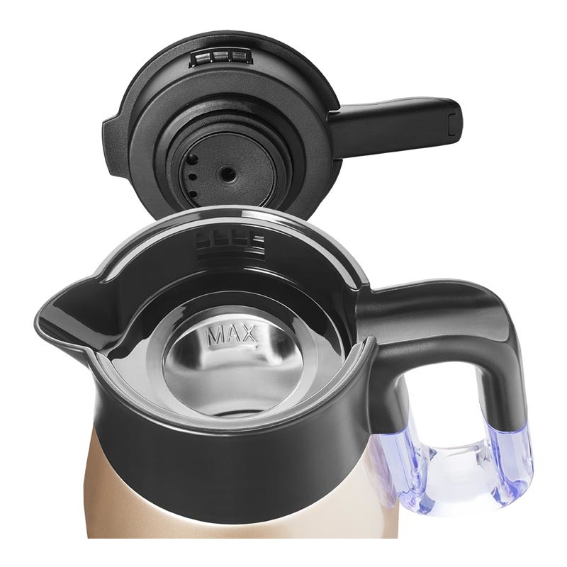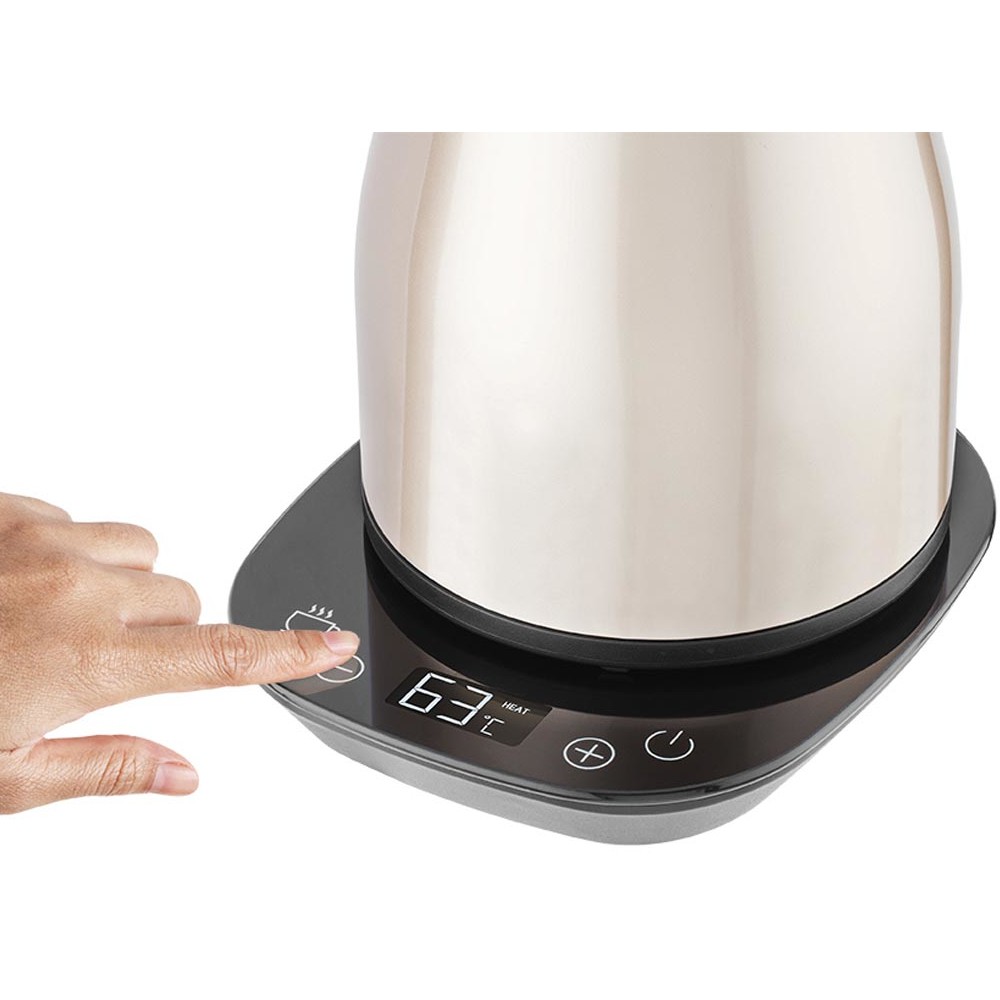 کتری CATLER KE 8110CH دارای بدنه ای از جنس استیل ضد زنگ است که در برابر صدمات احتمالی بسیار مقاوم است. دیواره داخلی هم از جنس استیل ضد زنگ بوده و در نتیجه هم در برابر بالا و پایین شدن حرارت بسیار مقاوم است و هم تغییری در کیفیت آب به وجود نمی آید. از دیگر ویژگی های این محصول می توان به پنل لمسی تعبیه شده بر روی پایه اشاره کرد که امکان تنظیم میزان حرارت آب از بین 40 تا 100 درجه سانتی گراد را برای شما فراهم آورده است. ظرفیت این کتری معادل 1.2 لیتر است که برای بهره گیری سریع در ضیافت های دوستانه بسیار مناسب است.