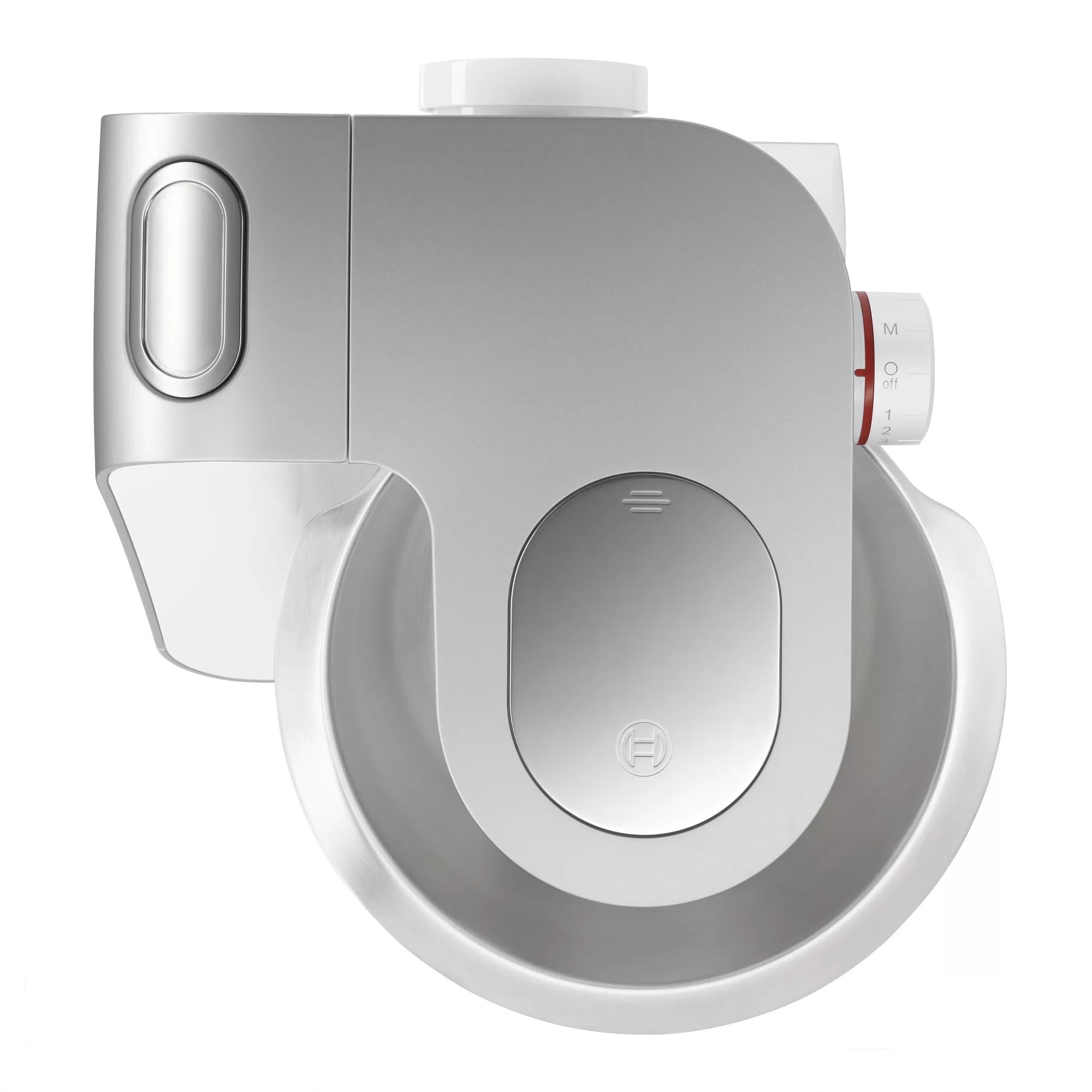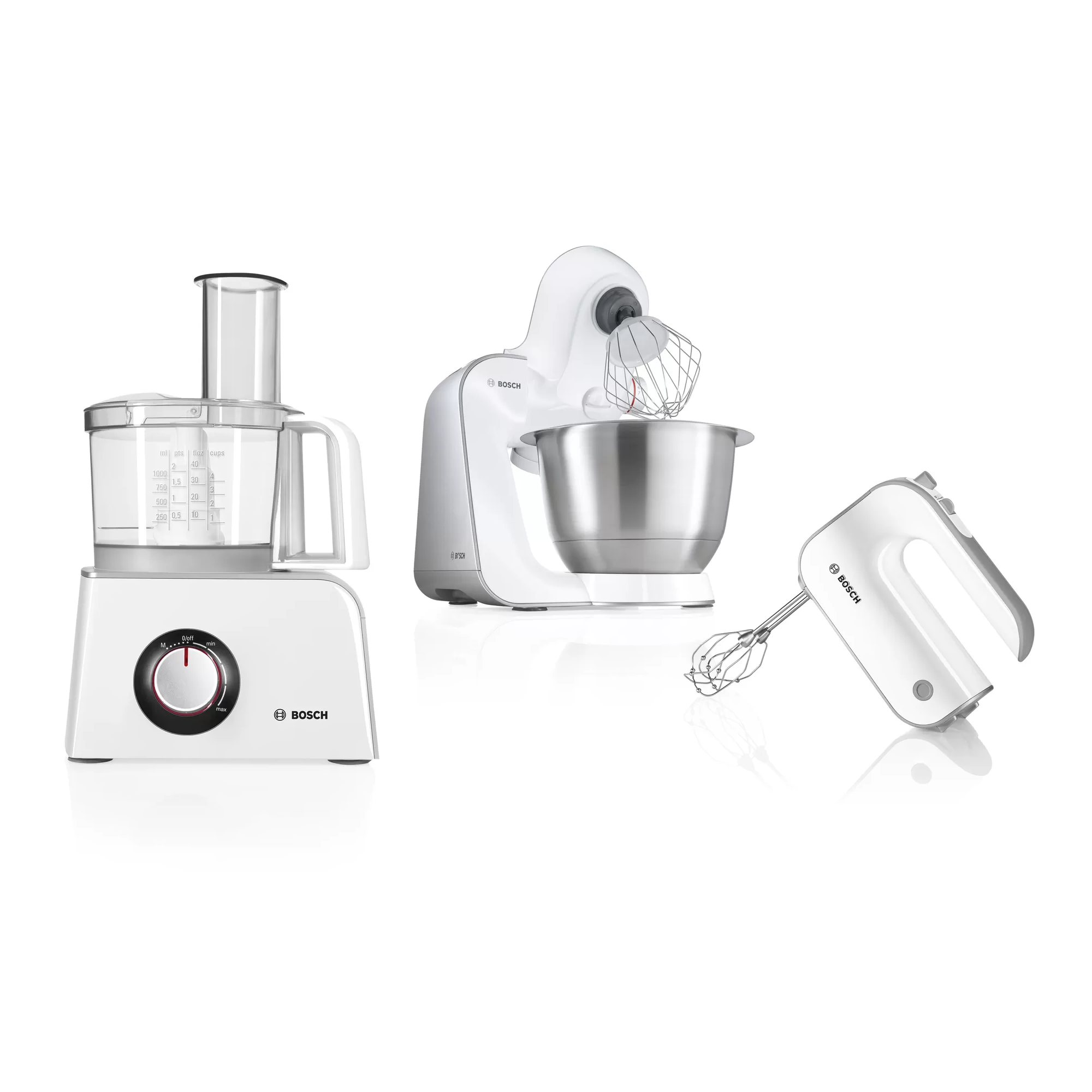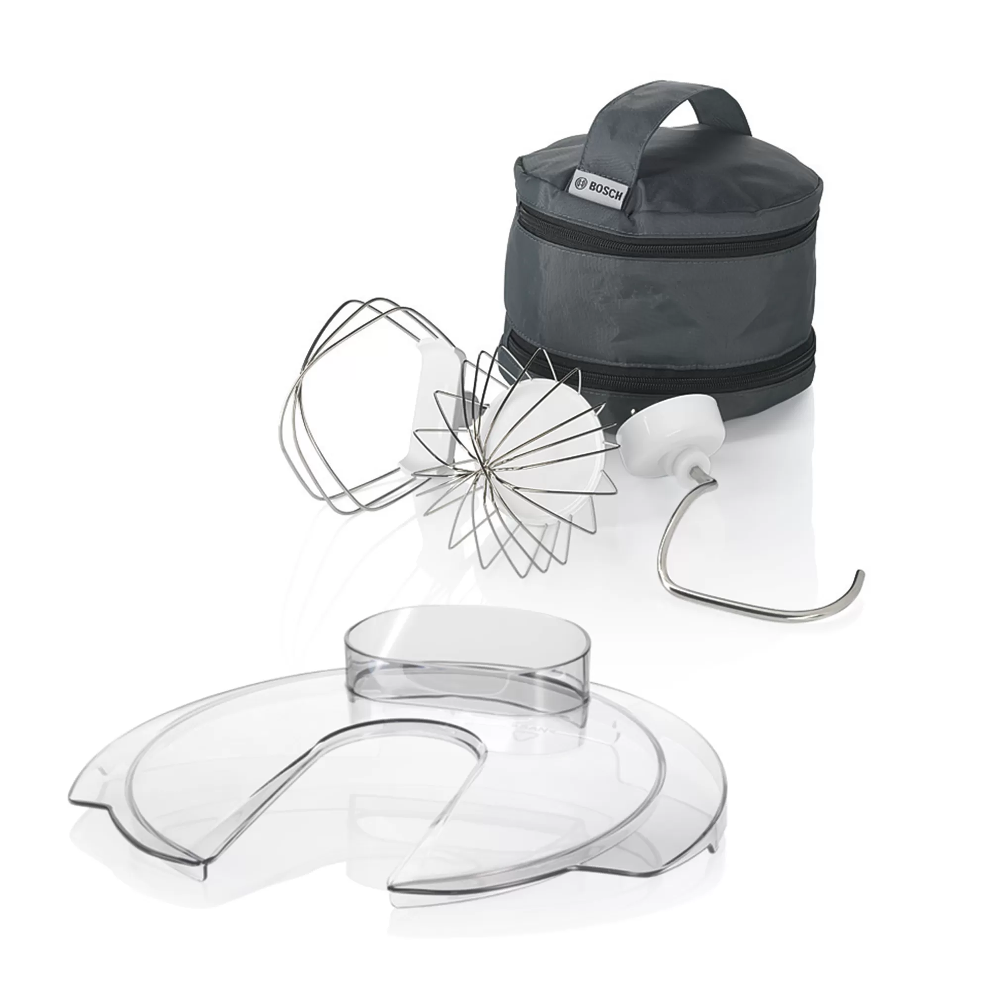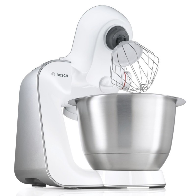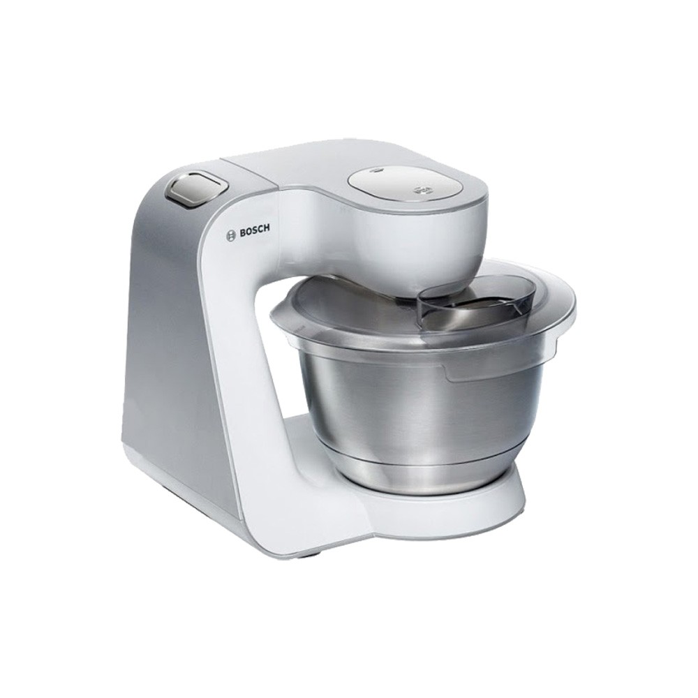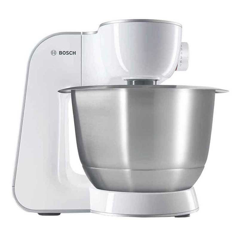 ماشین آشپزخانه بوش مدل MUM54251 یک محصول با کارایی های فراوان است که با موتور پرقدرت 900 وات توسط کمپانی بوش به بازار عرضه شده است. این دستگاه با قابلیت های مختلف مانند؛ مخلوط کن، همزن، خردکن، چرخ گوشت، آب مرکبات گیری، خمیر زن و رنده، شما را از تهیه دیگر لوازم برقی آشپزخانه بی نیاز می نماید. بدنه سفید و نقره ای رنگ این دستگاه از پلاستیک با کیفیت ساخته شده است و با چیدمان هر آشپزخانه ای هارمونی زیبایی ایجاد می نماید. ماشین آشپزخانه بوش مدل MUM54251کاسه استیل همزن این ماشین آشپزخانه حرفه ای با گنجایش 3.9 لیتر، مناسب برای آماده سازی خمیر نان و شیرینی برای تمامی اعضای خانواده است و 3 سری همزن، خمیر زن و مخلوط کن از جنس استیل ضد زنگ برای استفاده از این قابلیت طراحی شده است. همچنین کاسه همزن دارای درپوش شفاف از جنس پلاستیک است که نه تنها از بیرون ریختن مواد هنگام استفاده جلوگیری می نماید و تمامی عملکرد داخل کاسه قابل مشاهده است، بلکه دارای دریچه ای بوده که در صورت نیاز در حین انجام کار، مواد به کاسه اضافه شوند. بر روی بدنه دستگاه دکمه ای برای رهاسازی بازویی و تغییر کاربری دادن دستگاه وجود دارد.