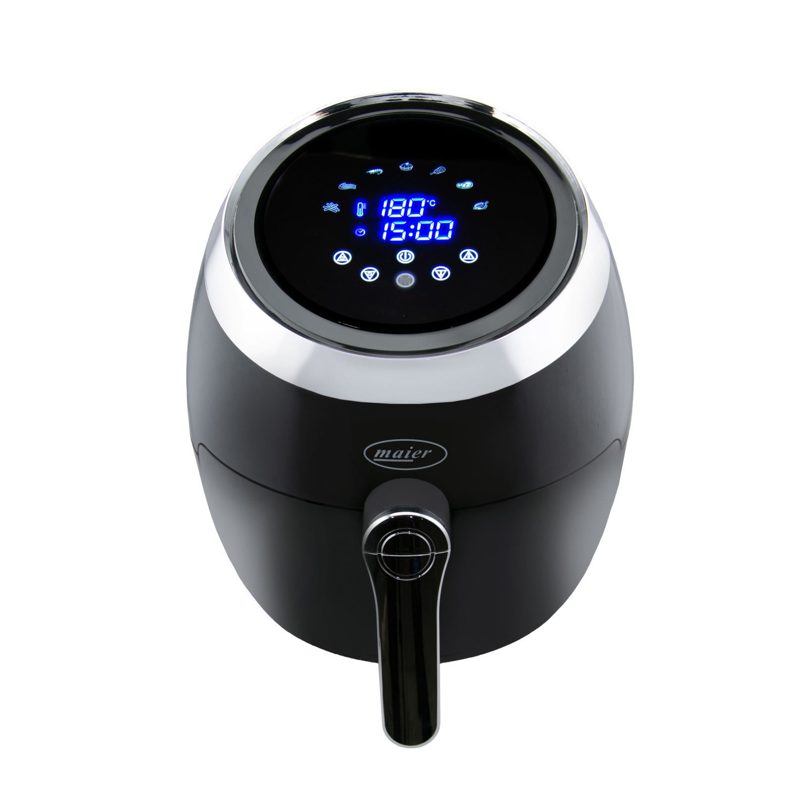 در هنگام پخت غذا با سرخ کن مایر میتوان حرارت مورد نیاز خود با توجه به نوع مواد داخل آن تنظیم کرد. یکی از ویژگیهای دیگر سرخ کن Maier MR-970 تنظیم مدت زمان پخت میباشد یعنی بعد از اتمام این زمان سرخ کن به طور خودکار خاموش میشود. در ساخت این سرخ کن از پلاستیک با کیفیت استفاده شده است و همچنین دارای دستههای عایق حرارت میباشد. سرخ کن مایر مدل MR 970 دارای نمایشگر لمسی برای کنترل دما و زمان میباشد. در این سرخ کن رژیمی مایر از چرخش هوای گرم برای پخت غذا استفاده میشود. بعد از تهیه غذا با این سرخکن رژیمی میتوان به آسانی قطعات داخل آن را از هم تفکیک کرد و آنها را شستشو داد. سرخ کن مایر در دو رنگ سفید و مشکی تولید میگردد.