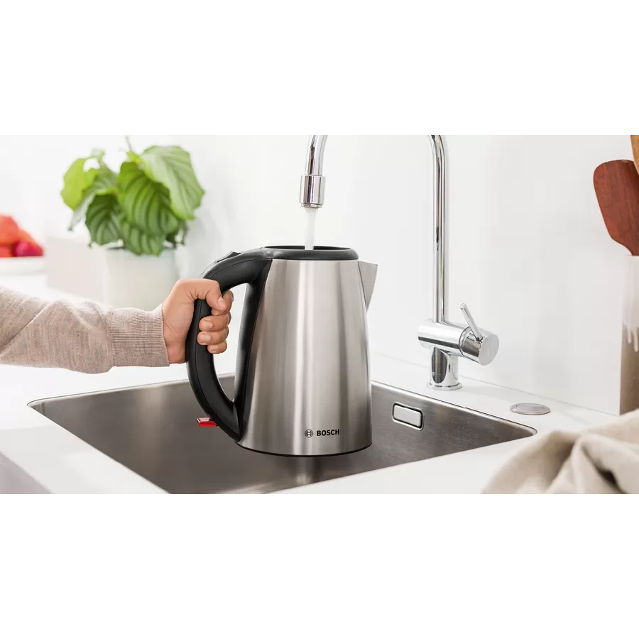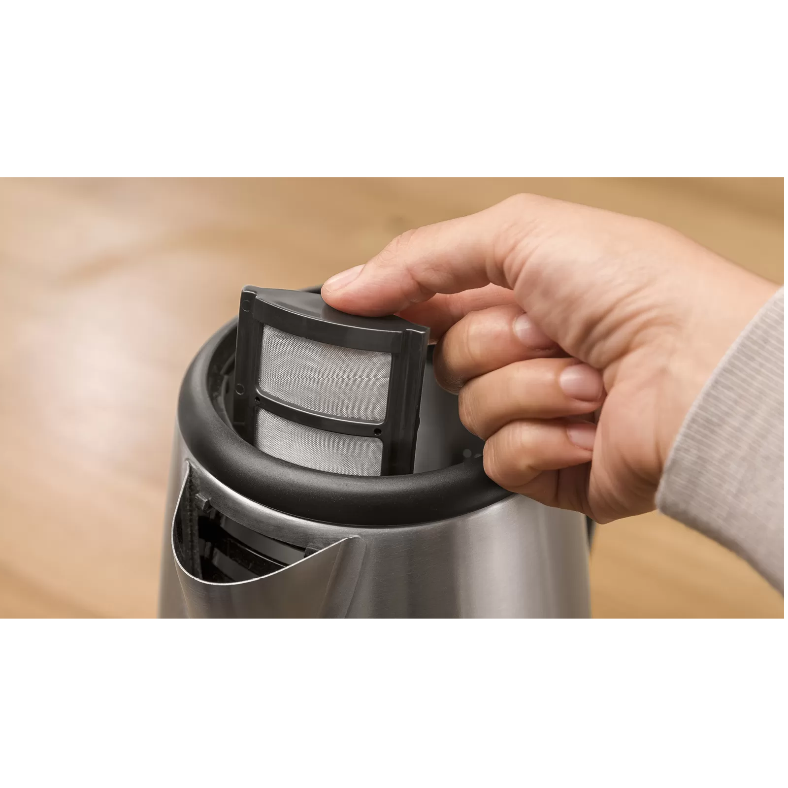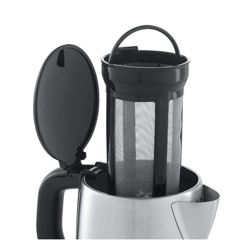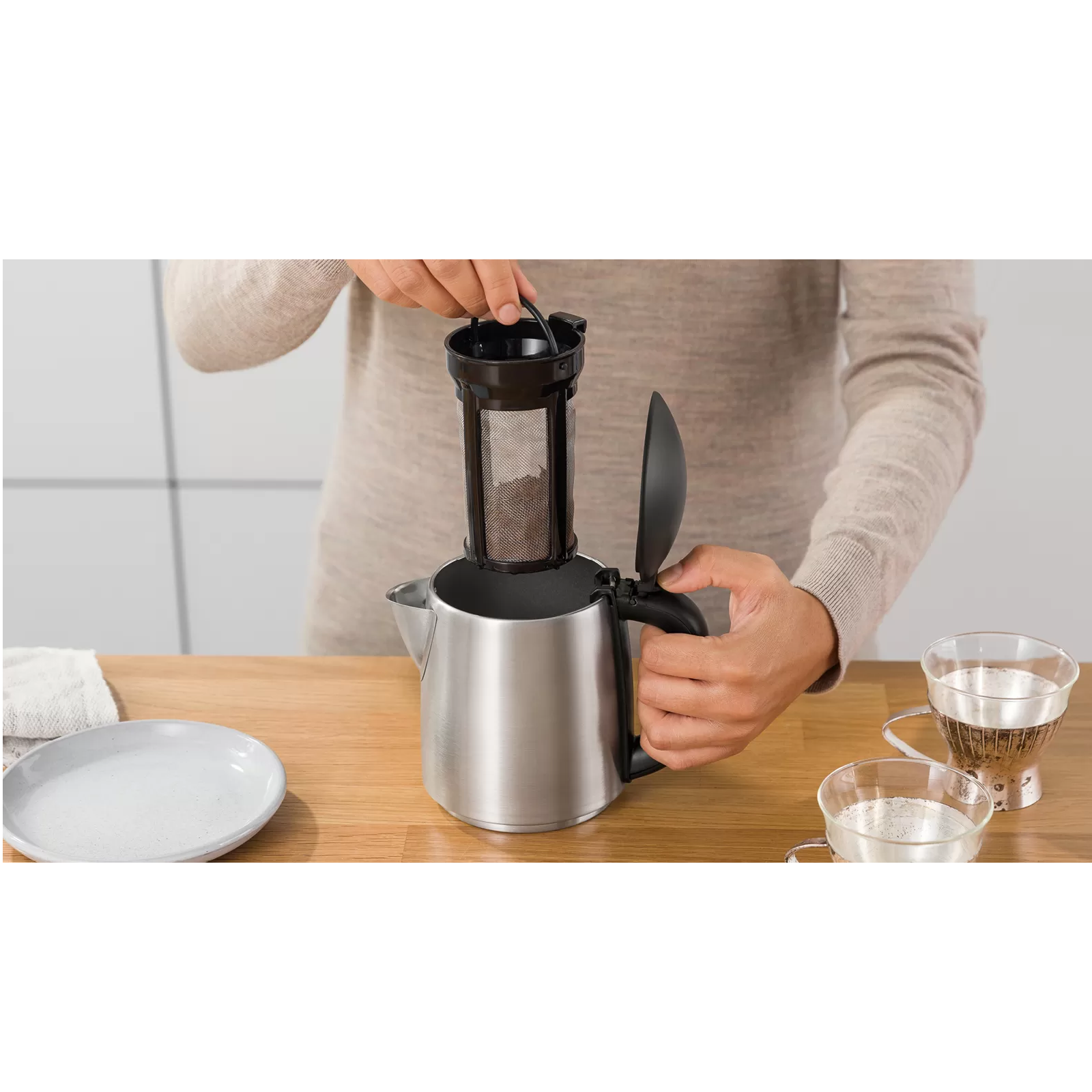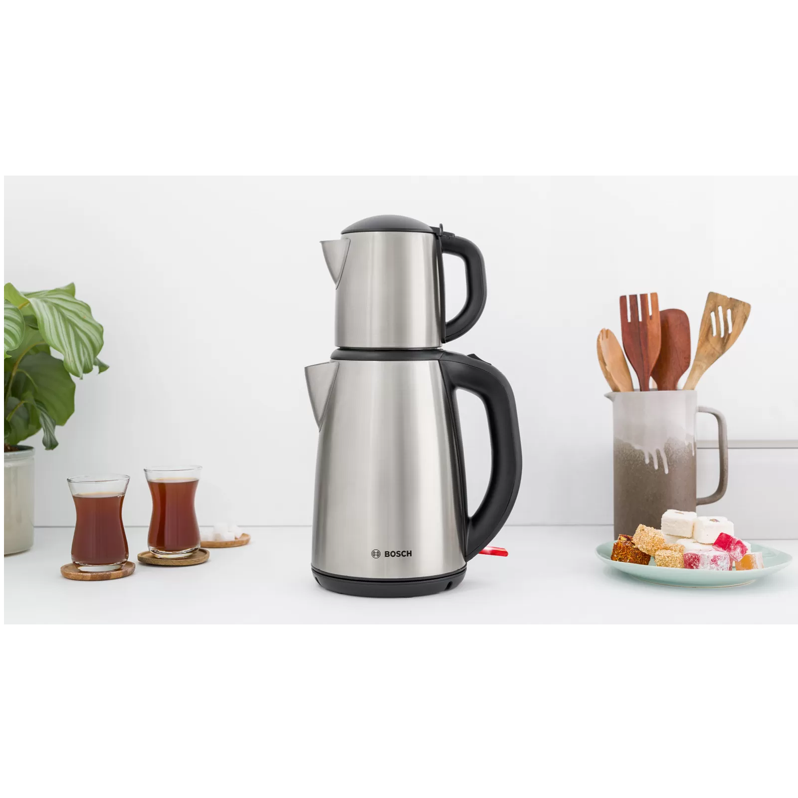 بدنه و محفظه داخلی قوری چای ساز BOSCH TTA5883 از استیل مقاوم و ضد زنگ ساخته شده است و کیفیت بالای استیل مانع از تاثیر آن بر روی طعم چای می شود. گنجایش قوری برابر 0.8 لیتر است. قوری دارای یک فیلتر چای بوده که برای سهولت در تمیزکاری، قابل جدا شدن و شستشو خواهد بود. کتری و قوری هر دو دارای درب مخصوص به خود هستند.