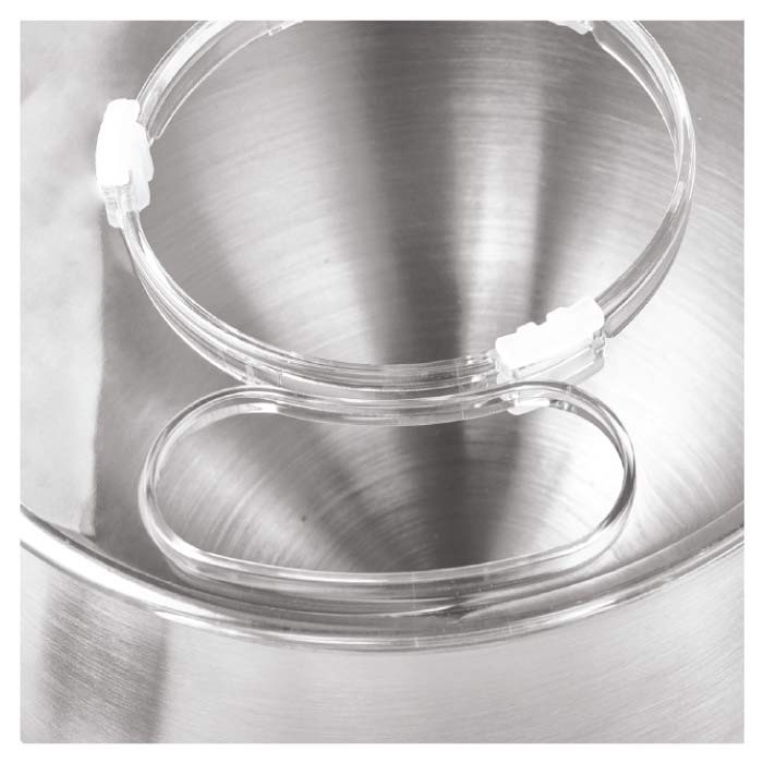 همزن برقی کاسه دار نوال مدل 3551 دارای تنظیمات ۶ سرعته است که با دکمه ولوم چرخشی قابل تنظیم است. این همزن دارای عملکرد پالس است. با عملکرد پالس، می توانید به سرعت پیشین همزن بازگردید و به راحتی سرعت مخلوط کردن را تنظیم کنید. توان این دستگاه 1000 وات بوده و با این قدرت می توانید به راحتی و با کیفیت بالا خمیرها را مخلوط و خمیرزنی کنید. کاسه این همزن دارای درپوشی از جنس پلاستیک شفاف است که از پاشش و پخش مواد و کثیف کاری در هنگام استفاده از همزن کاسه دار نوال جلوگیری می کند و همچنین دارای دریچه ای است تا در هنگام کار بتوانید مواد دلخواه را به آن بیافزایید بدون آن که در پوش را بردارید. این کاسه قابل جداسازی است که شستشوی آن بسیار آسان می کند.